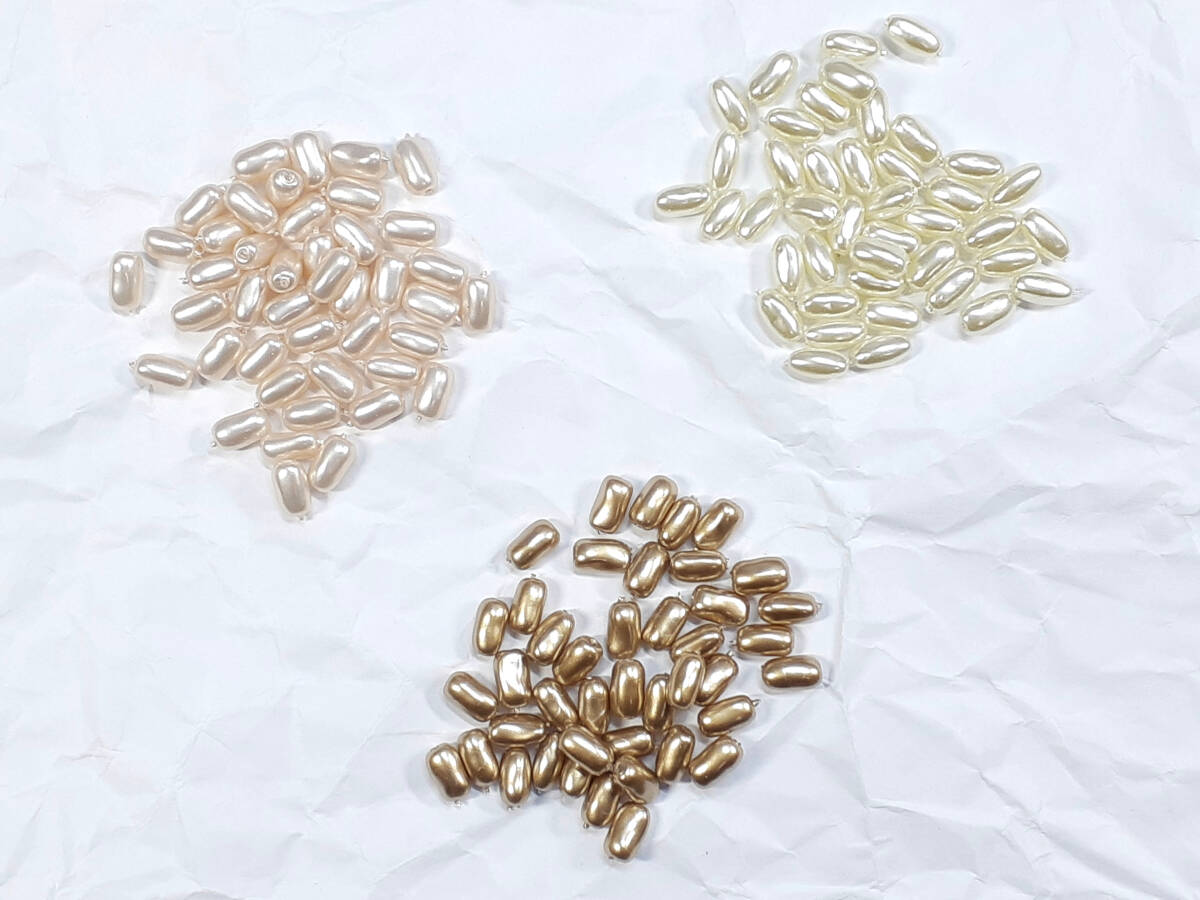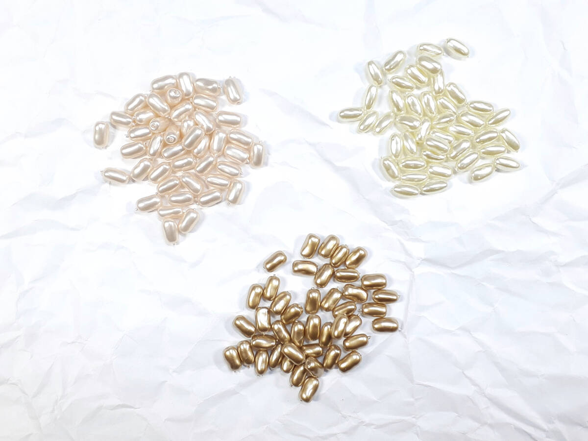 | 商品の ご説明 ユリア樹脂 貫通穴です。 約 3,5×6,5 mm 変型 ナツメ鬼 各色 40粒×3色 合計 120 粒 イエロークリーム : カルトラピンク : エナ金パール アクセサリーのパーツとして 御使い下さい。 120 粒で 約 1本です。 | ||