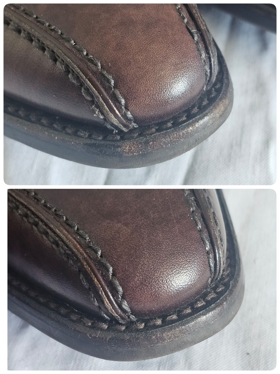 | 商品説明 | アクセスいただきありがとうございます。 説明文、自己紹介欄を全てお読みいただき納得されたうえで、ご入札お願いいたします。 発送など業務のストップに関するお知らせは自己紹介欄にアップいたします。 特にお急ぎの方はご注意下さい。 なお、画像にあるものが全てです。 革靴をあまり履かなくなったということで 代理出品です。 かかとの減り、スレ、傷、履きジワなど 状態は画像でよくご確認ください。 |
