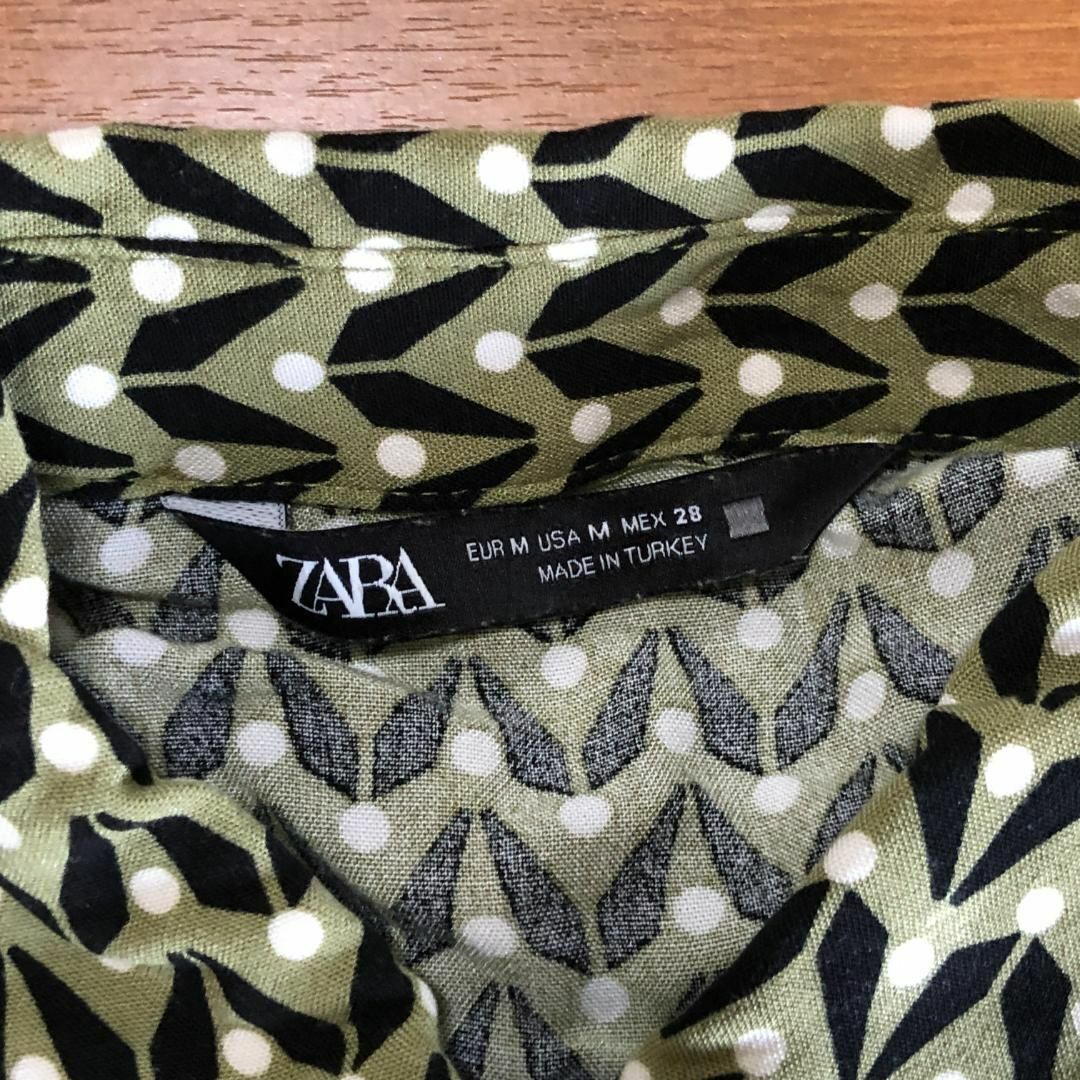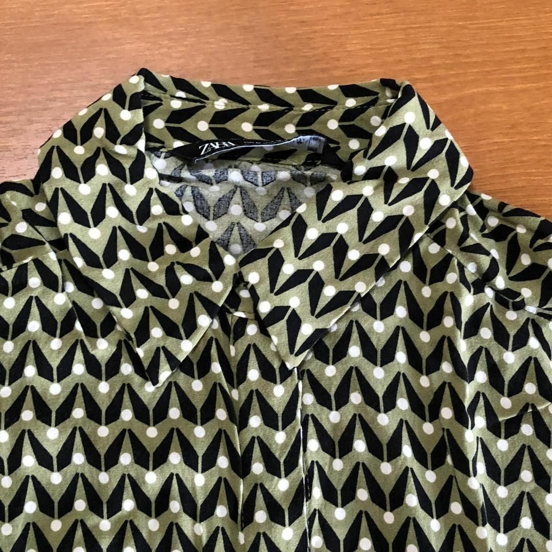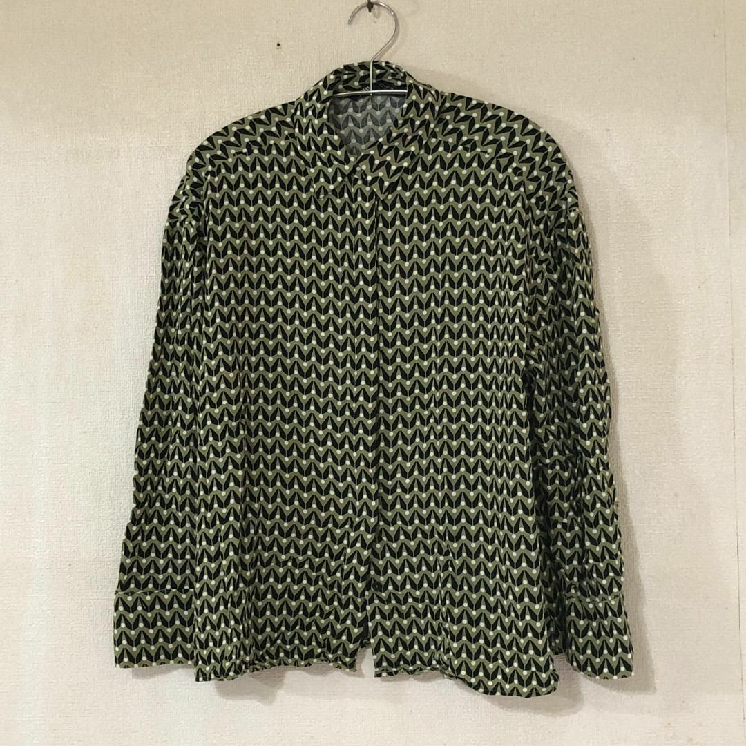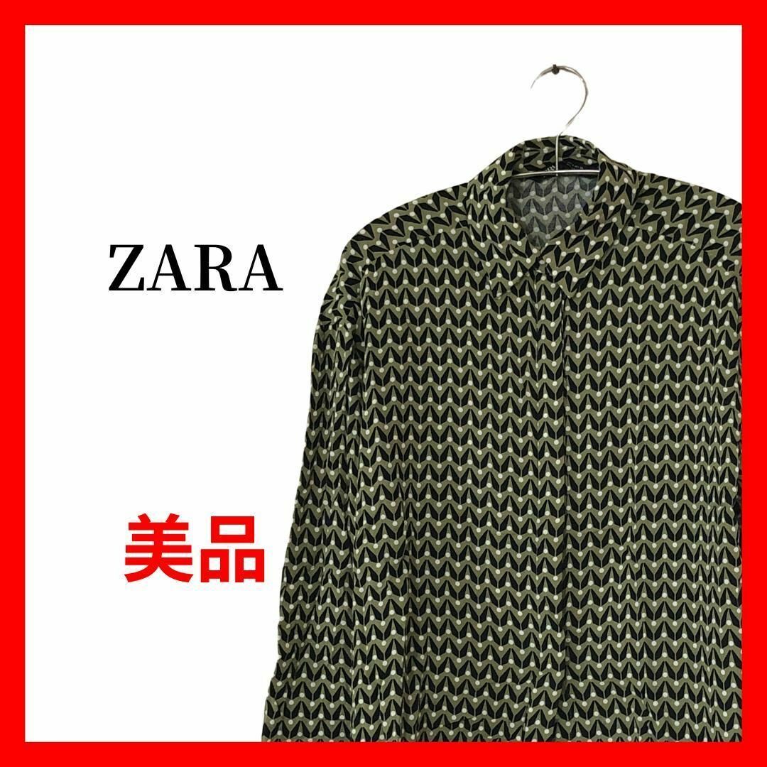 ZARA 幾何学模様 シャツ ブラウス グリーン系 レトロ 総柄 B1709