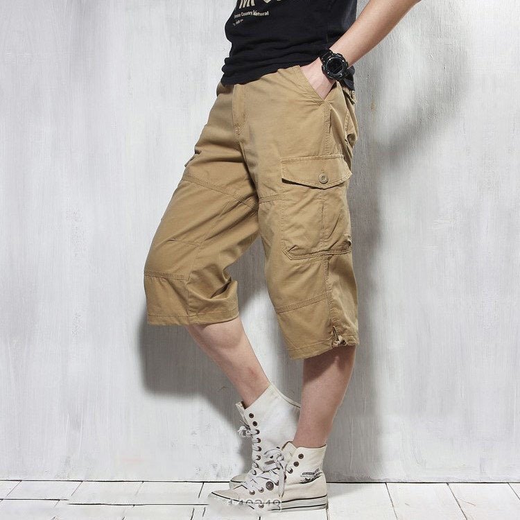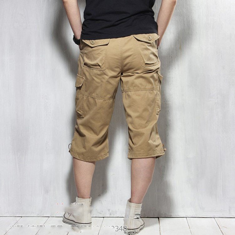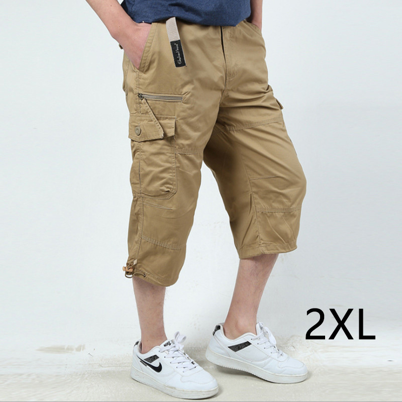 カーゴパンツ メンズ 7分丈パンツ クロップドパンツ ハーフパンツ スポーツ 七分丈 膝下 大きい 夏 綿100% カーキ 2XL