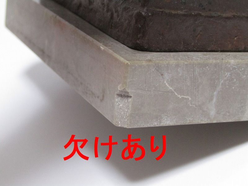 商品説明 | 【必ずご確認ください】 落札から24時間以内に取引連絡のいただけない方、72時間以内に入金できない方の入札はご遠慮下さい。 【重要】 商品説明・画像・注意事項・発送詳細を全てご確認及びご納得のうえでのご入札をお願いいたします。 また、【現状渡し】となります事を十分ご検討いただいたうえでのご入札をお願いいたします。 トラブル防止の為、少しでも入札に不安がある方、神経質な方のご入札はご遠慮下さい。 ご理解、ご了承の程、宜しくお願い致します。 【特記事項】 画像にてご判断できる方のみ、ご入札下さい。 若干の経年感や細部に汚れなどありますので、 あくまでも現状渡し、ノークレームにてご理解いただけます方のみ、 ご入札ください。 状態につきましては、画像にてご判断下さい。 ※付属品は画像にあるもので全てです。 ※その他、画像にてご判断下さい。 【実寸サイズ(約)】 W 125mm D 75mm H 200mm(台座含む) 重さ 1754g ★ご不明な点がありましたら、入札の前に必ず[質問欄]よりお問い合わせをお願いいたします★ |