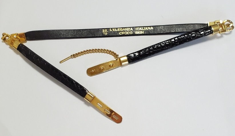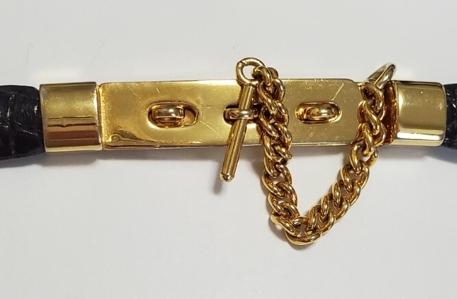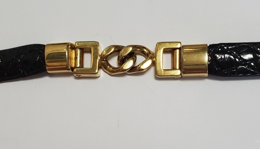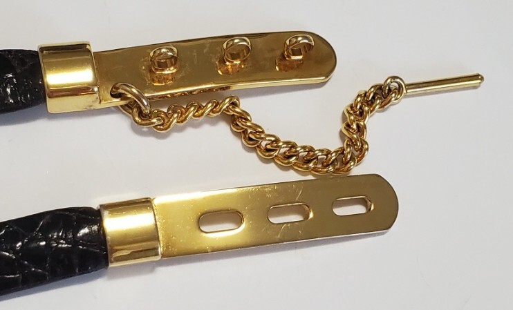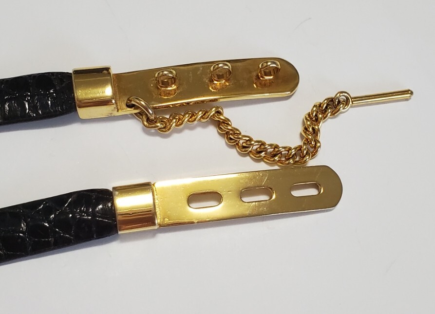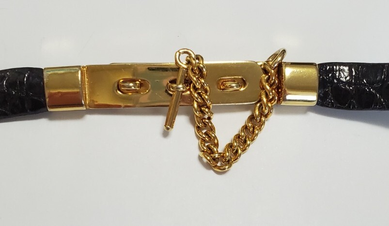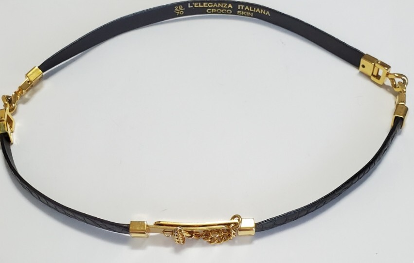 ●L'ELEGANZA ITALIANA●クロコダイル わに革 ベルト レディース 黒&ゴールドカラー 幅1,3㎝ 71㎝