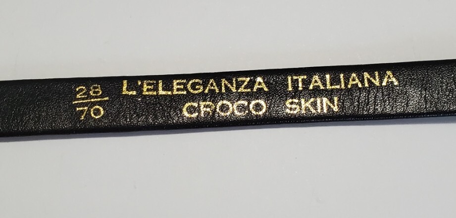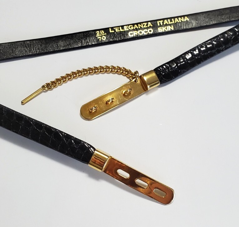 ●L'ELEGANZA ITALIANA●クロコダイル わに革 ベルト レディース 黒&ゴールドカラー 幅1,3㎝ 71㎝ きれいめ