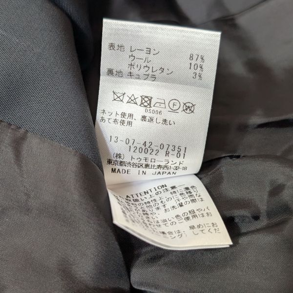 | 素材 | 表地: レーヨン87% ウール10% ポリウレタン3% 裏地: キュプラ100% |