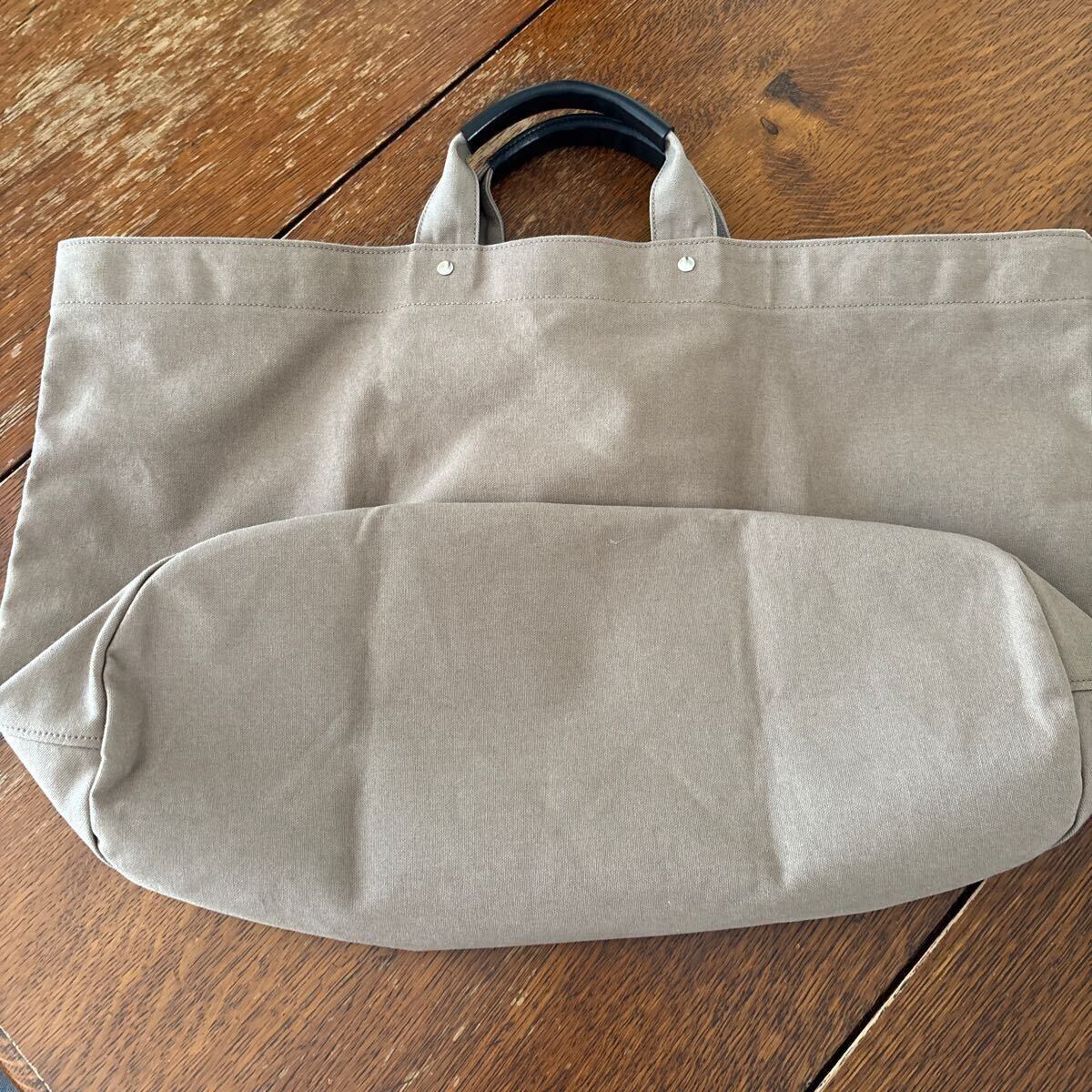 現行のランドリーバッグは厚手のキャンバス生地ですが、こちらは薄手のため自立はしませんが、小さく折りたためます。その点ご了承ください。