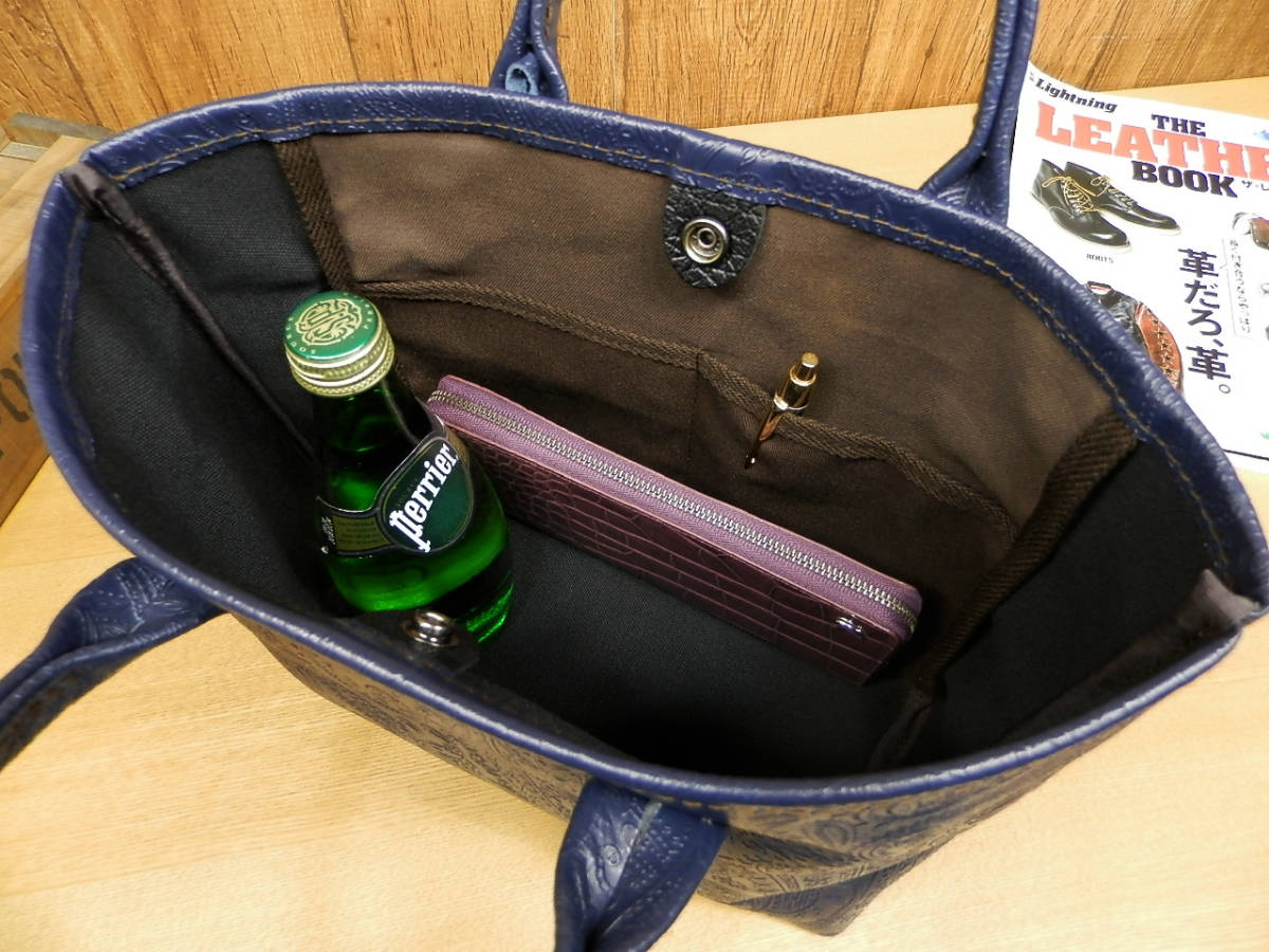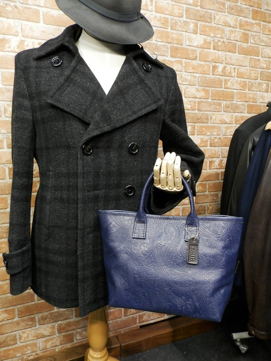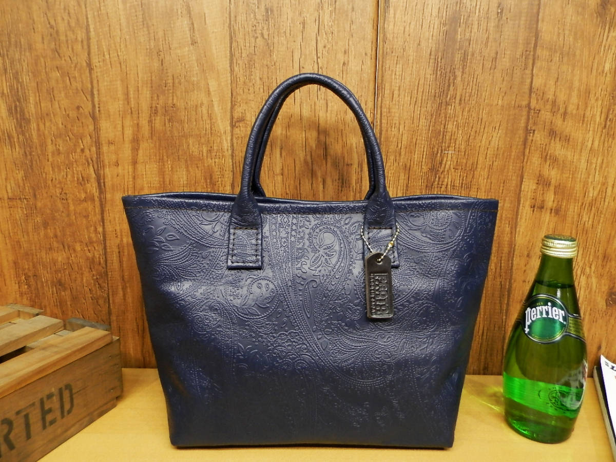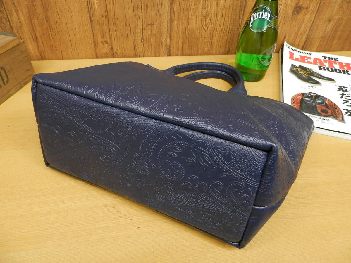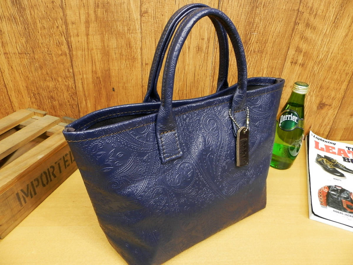 ☆受注生産☆上品ダークネイビー☆ペイズリー柄レザーのミニトートバッグです♪Sサイズ濃紺ハンドメイド日本製カスタムできます♪