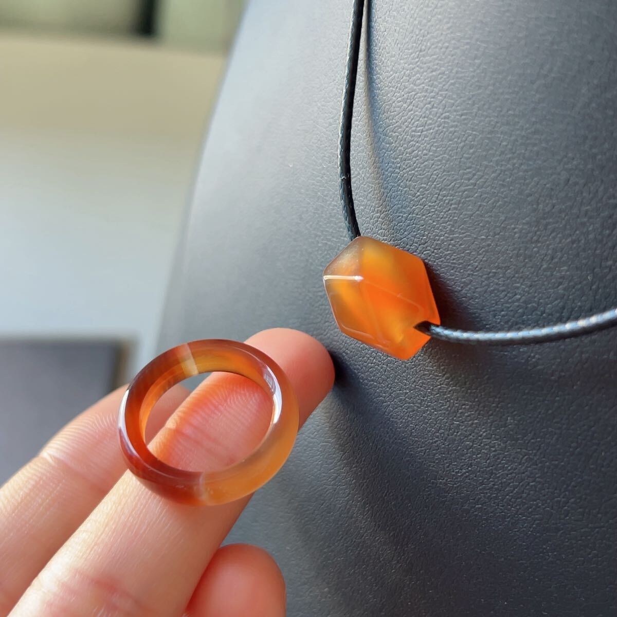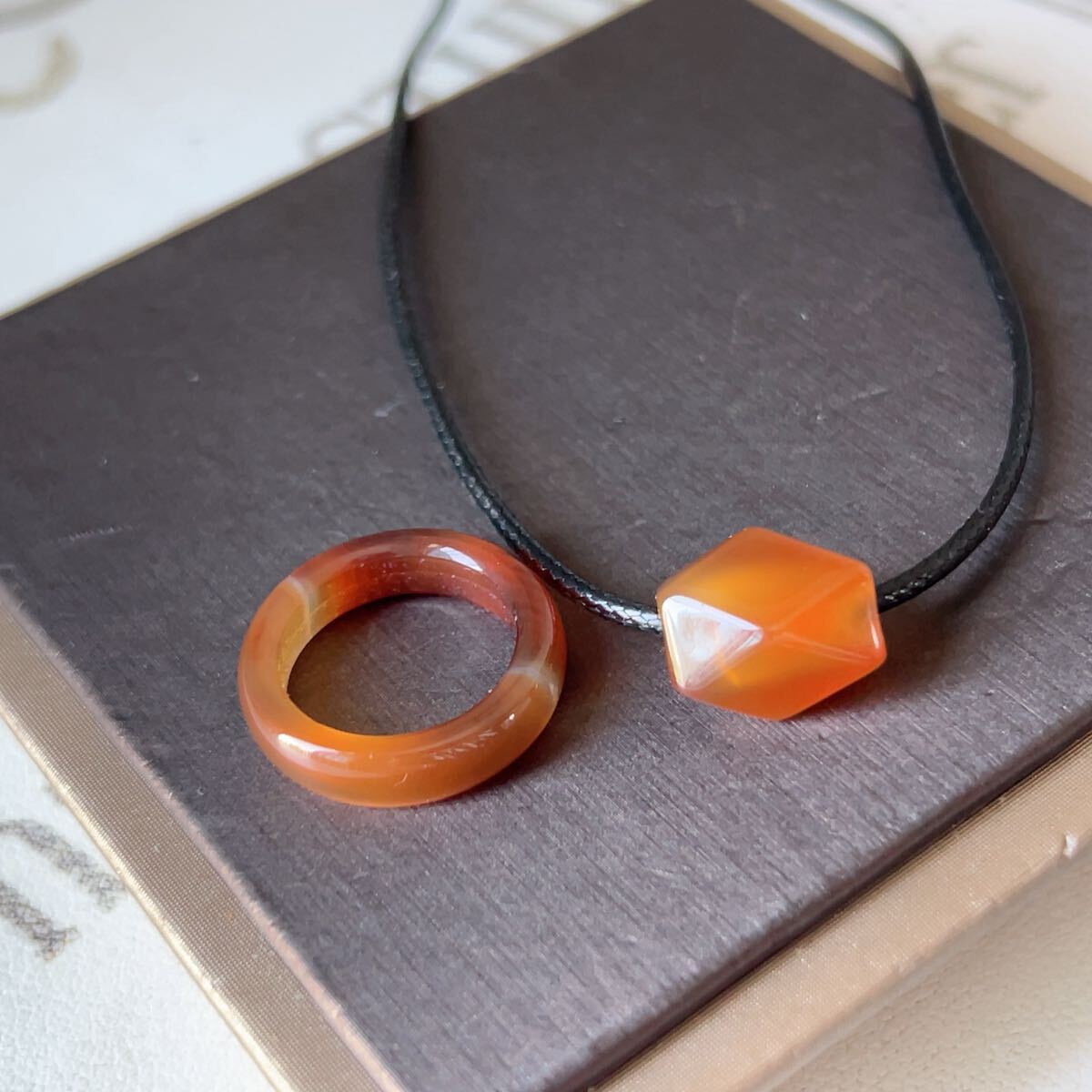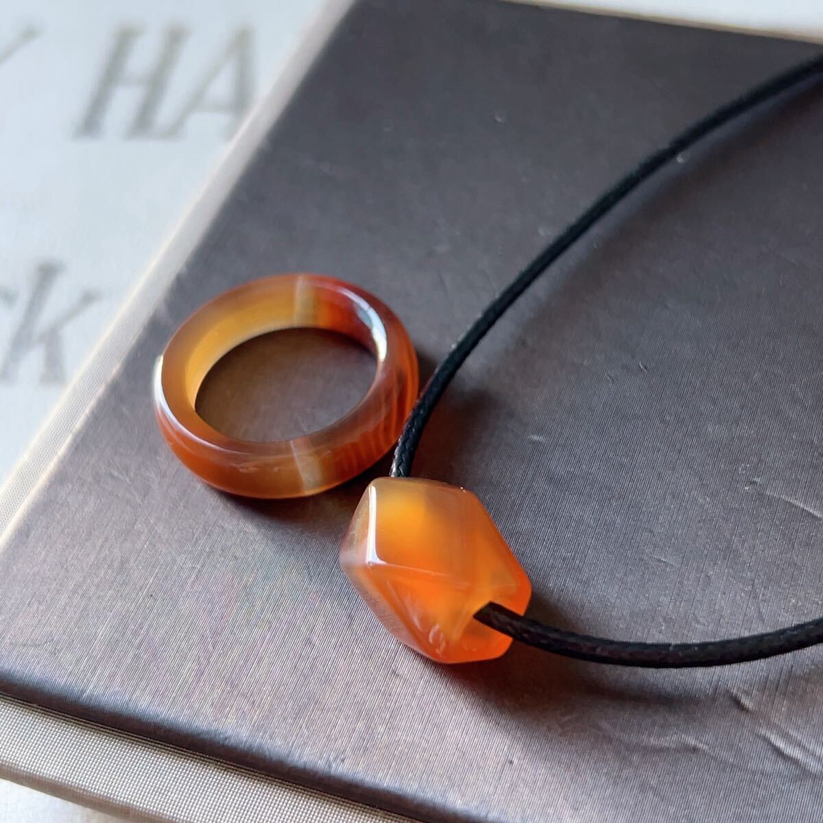 ◇瑪瑙◇レッドメノウ◇アゲート◇ネックレス+リング(11.5号) 計2点セット◇パワーストーン◇天然石◇巾着袋付◇プレゼントに030S6179