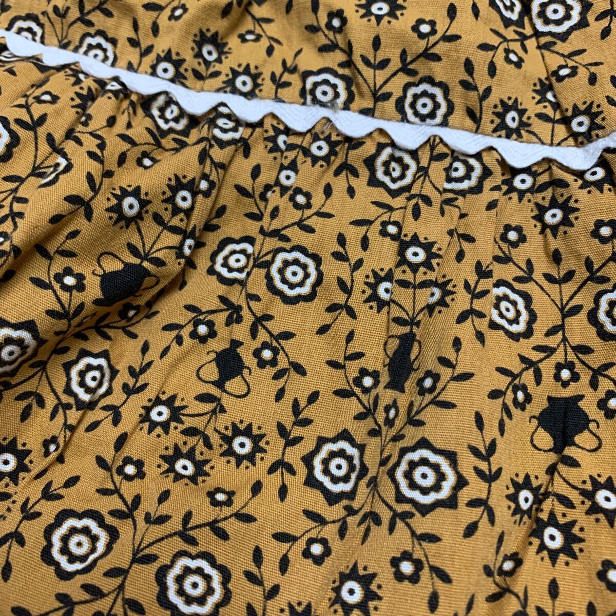 ウエストはボタンとコの字のジッパーです(写真2)。