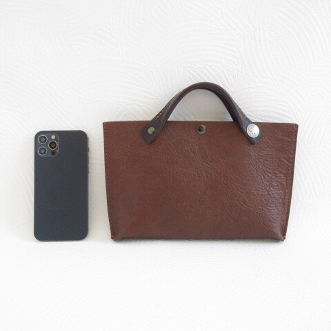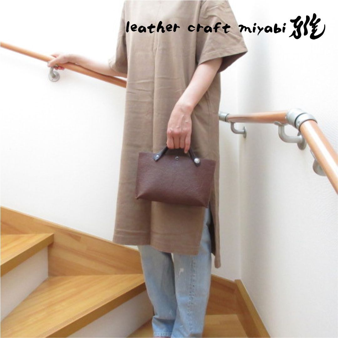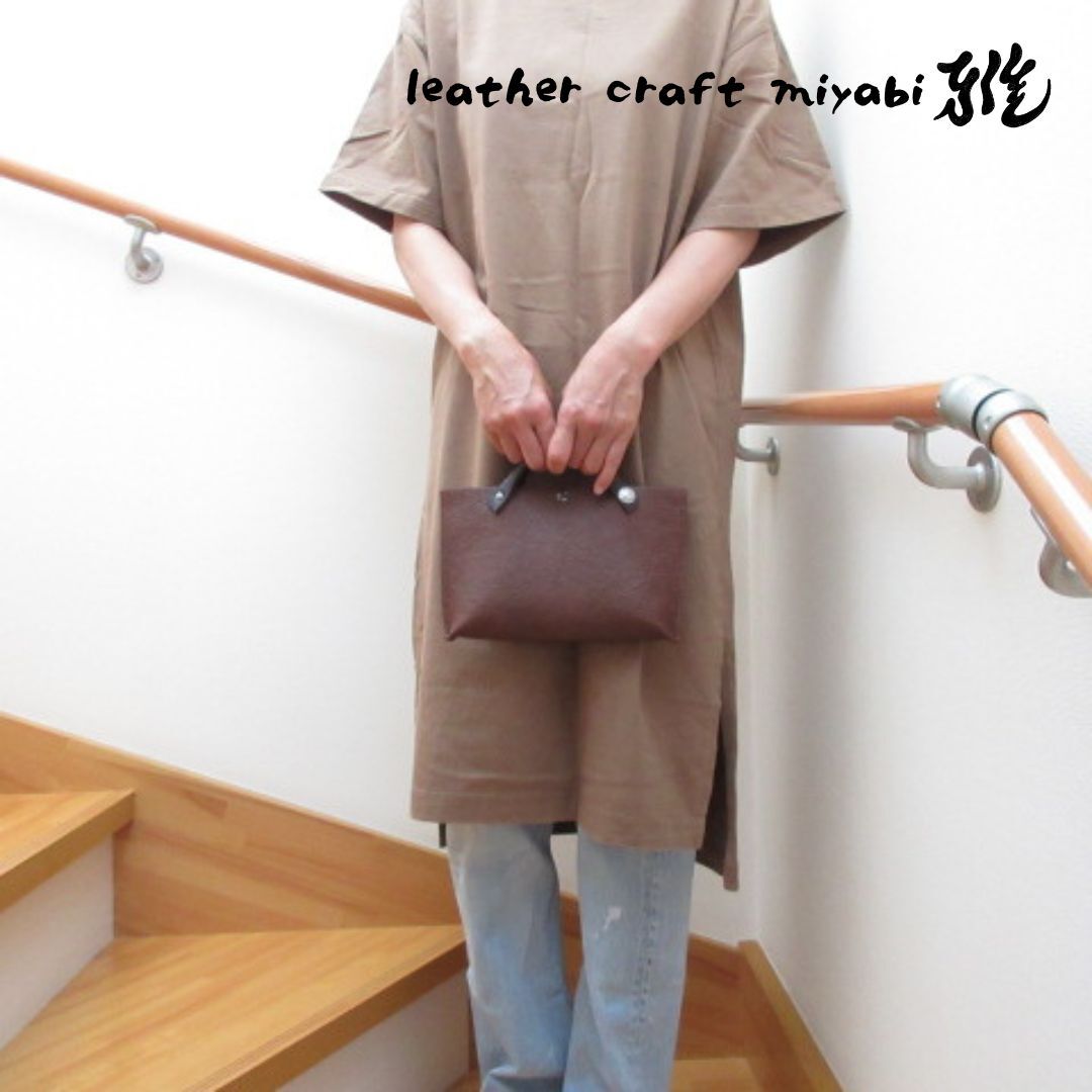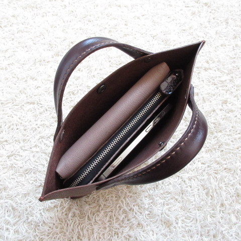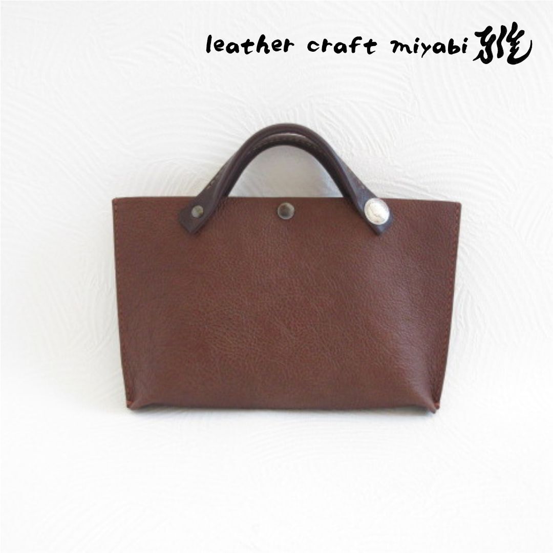 【L.C. 雅】バッグインにも小さくお出掛け♪《牛革》特別仕様★手縫い★・ミニマルトート・ブラウン・ナチュラルシュリンク・0515