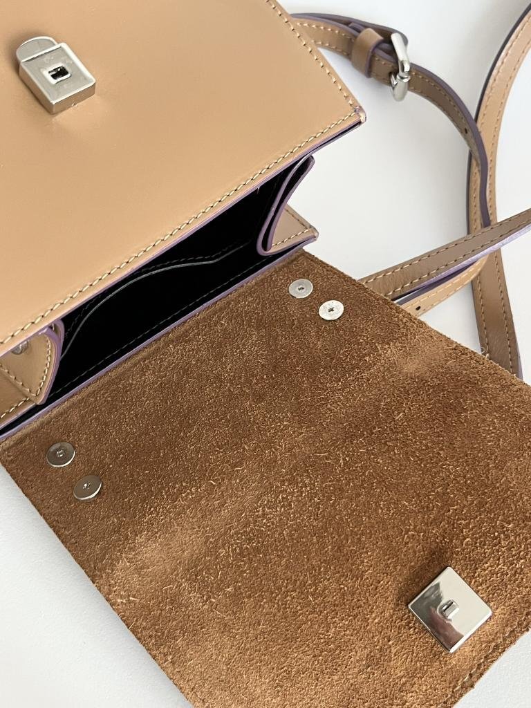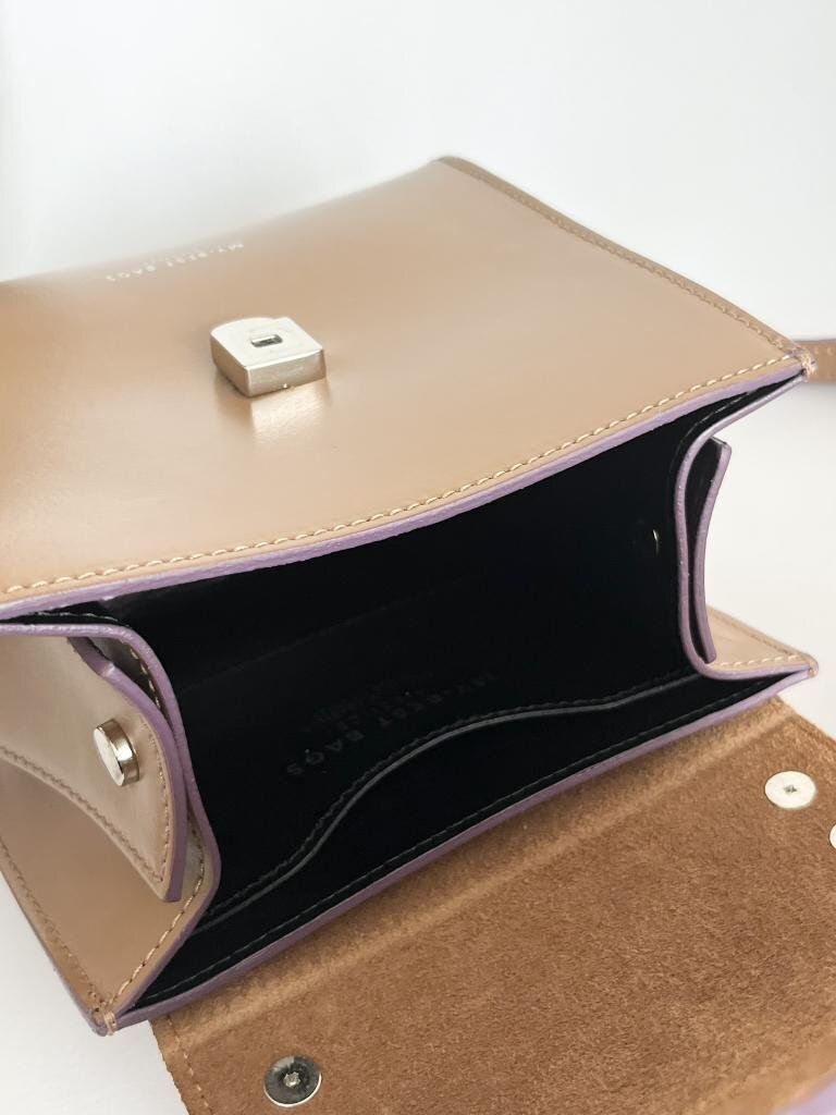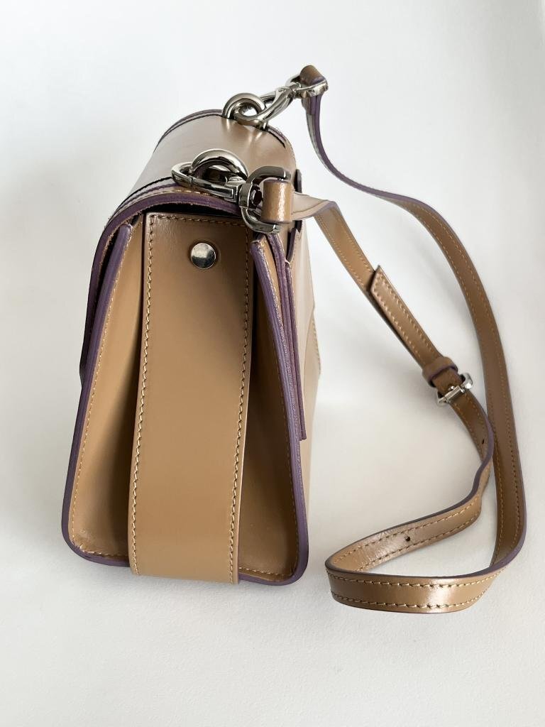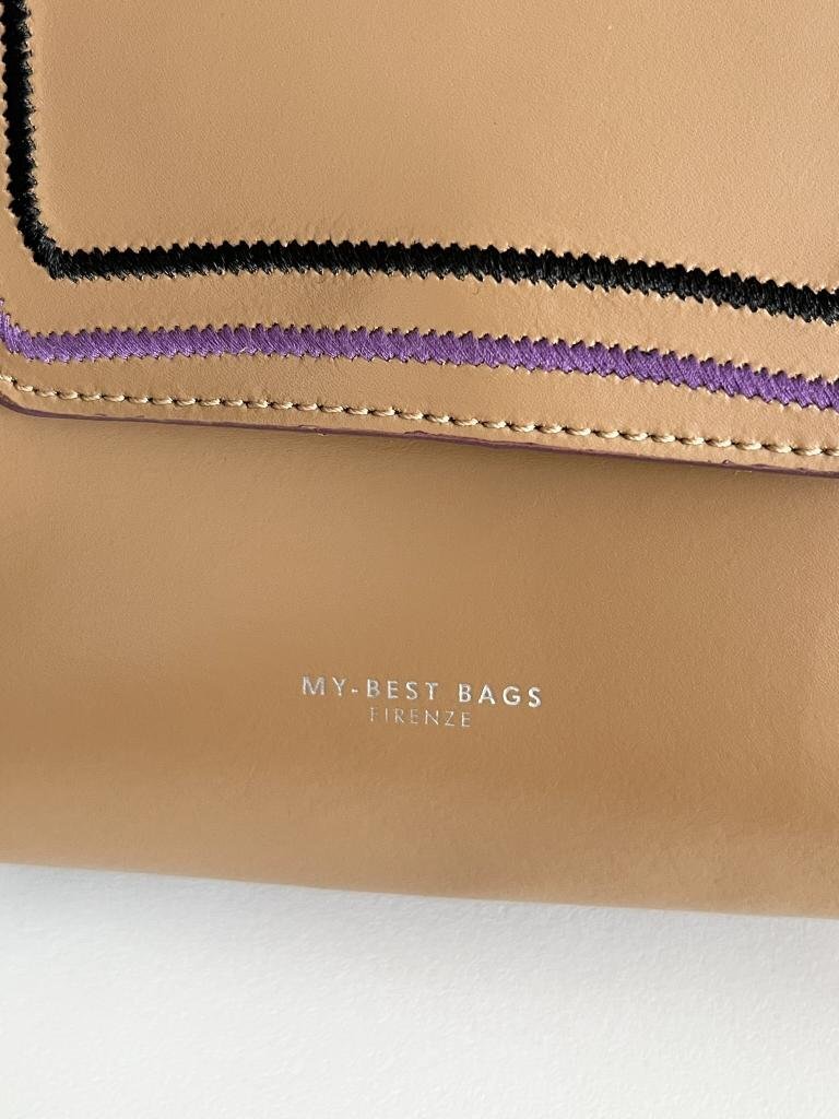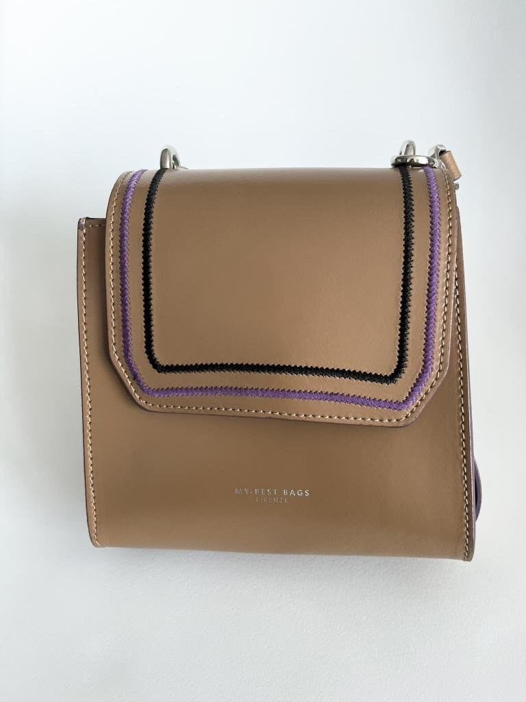【送料込】MY-BEST BAGS  ear PAPILLONNER取扱い ミニボックスショルダーバッグ 牛革 ブラウン×パープル×ブラック おしゃれ 6454209
