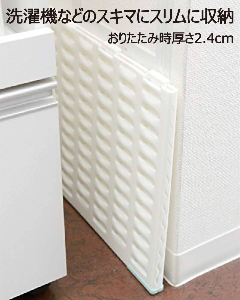 説明 床を濡らさずジメジメマットがそのまま干せる! ○ベランダまで行かなくても大丈夫!使用したバスマットをそのまま干せる。○省スペースで干すことができる。○女性でも簡単に持ち運びができる軽量設計。 使用サイズ(約):W570xD410XH12mm本体重量(約):600g単品(パッケージ)サイズ(約):W330XD25XH515mmパッケージ重量(約):625g ベース:ポリプロピレン滑り止め:エラストマー