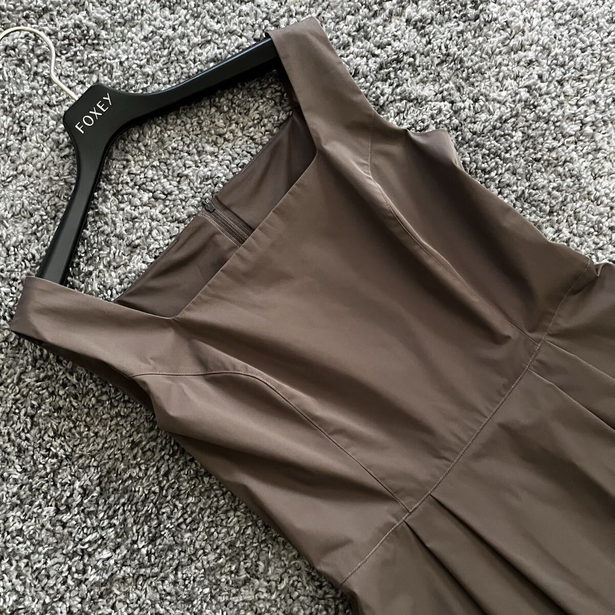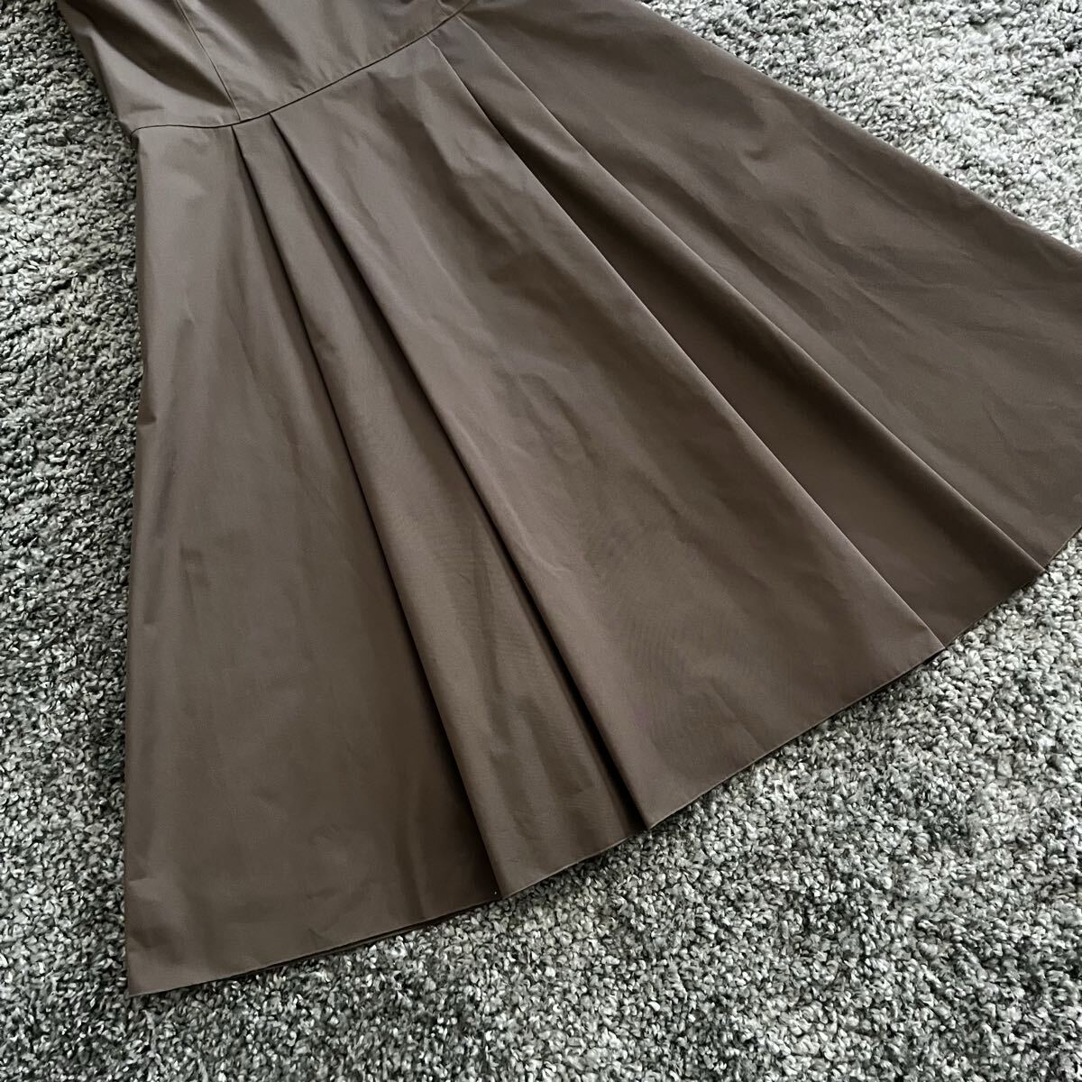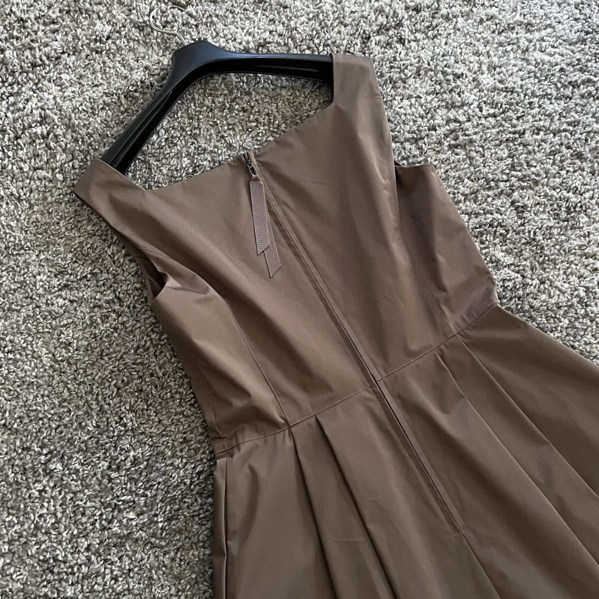 お色はココアブラウン(グレーがかったブラウン系のニュアンスカラー)。ハリのあるグログラン素材でふんわりフレア。バックファスナーです。