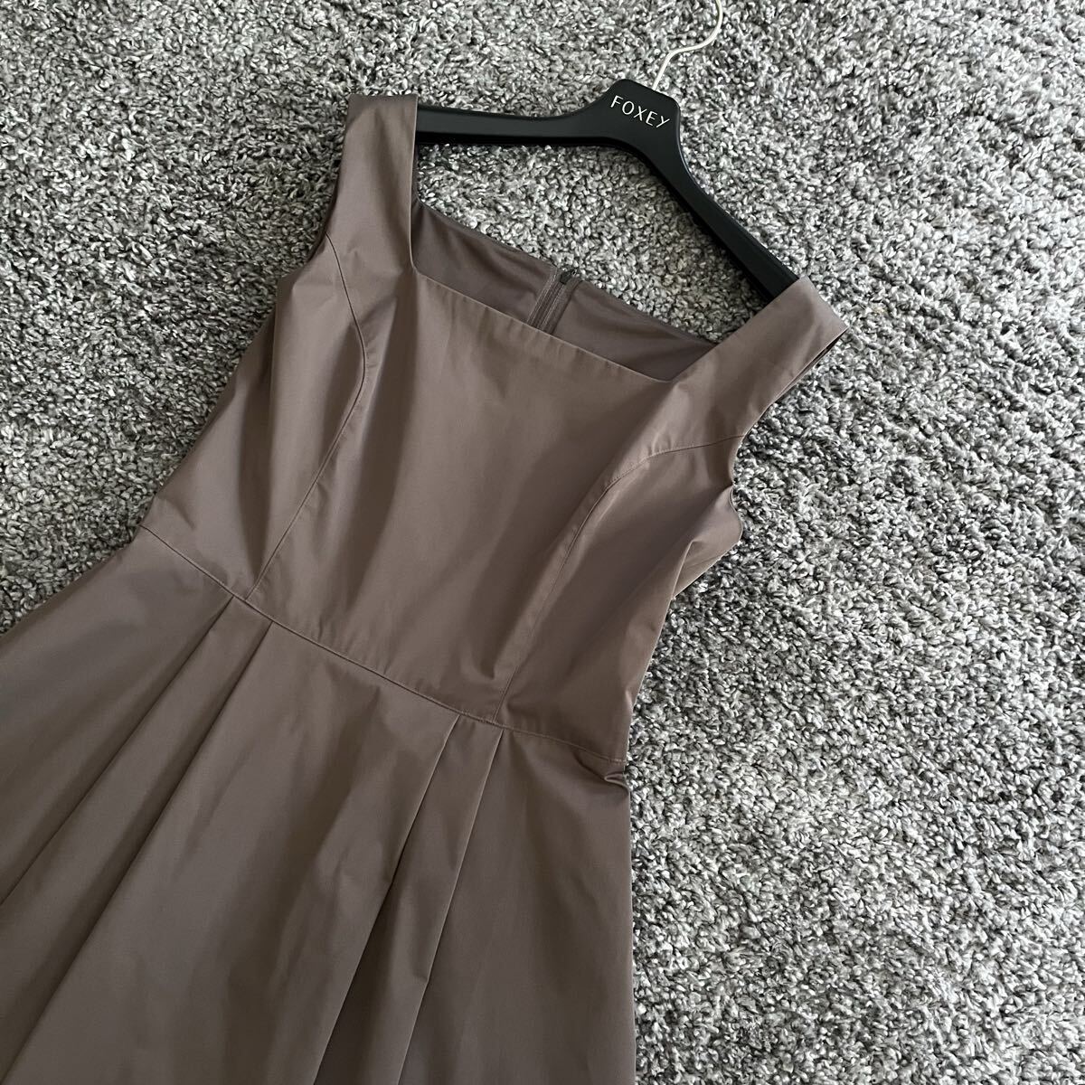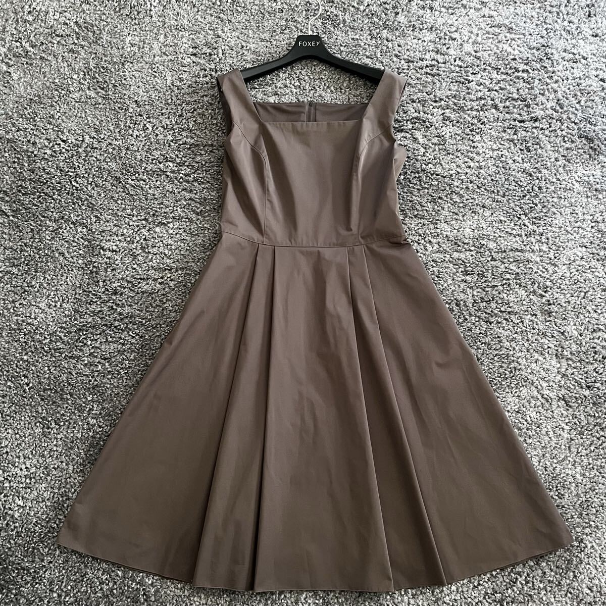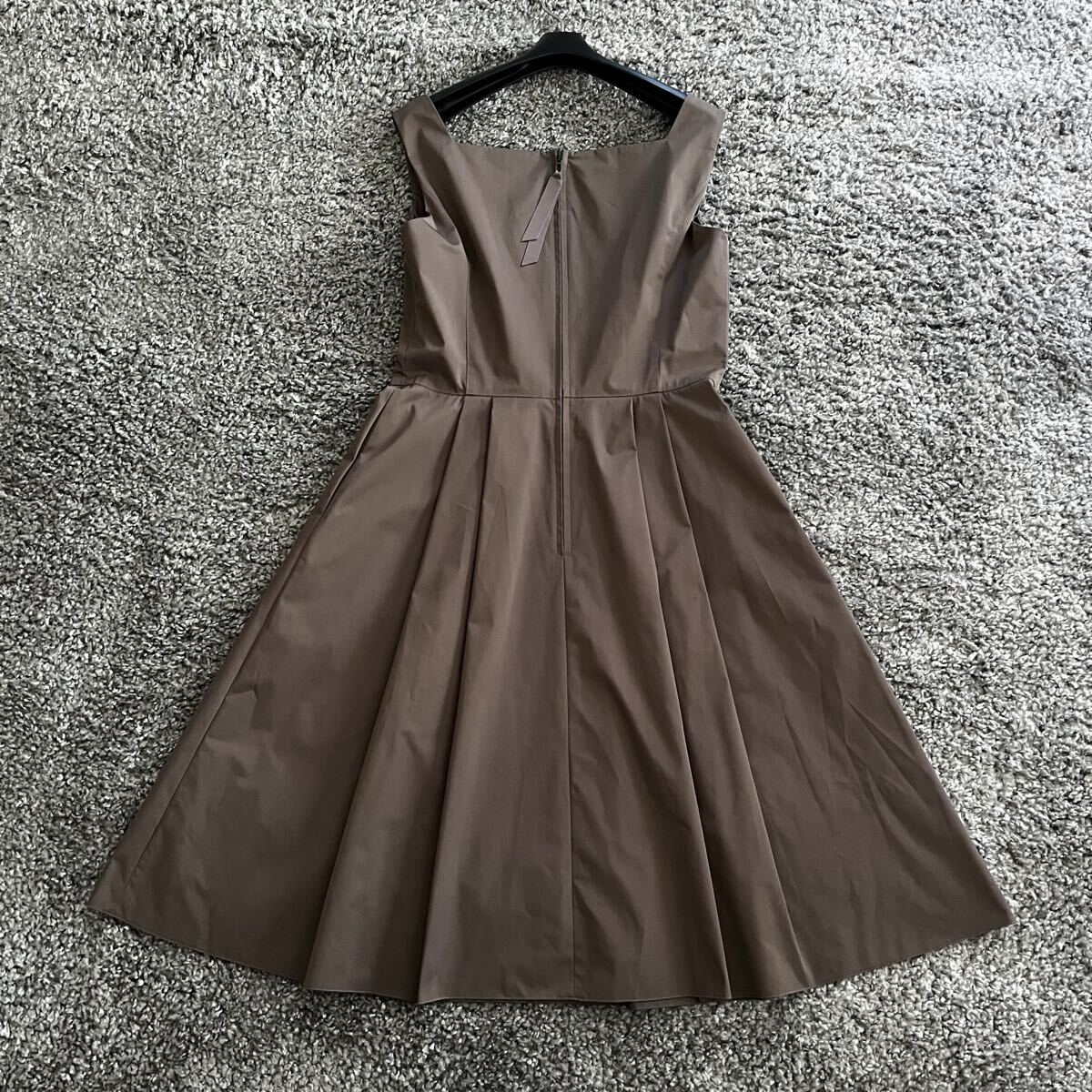 お色はココアブラウン(グレーがかったブラウン系のニュアンスカラー)。ハリのあるグログラン素材でふんわりフレア。バックファスナーです。