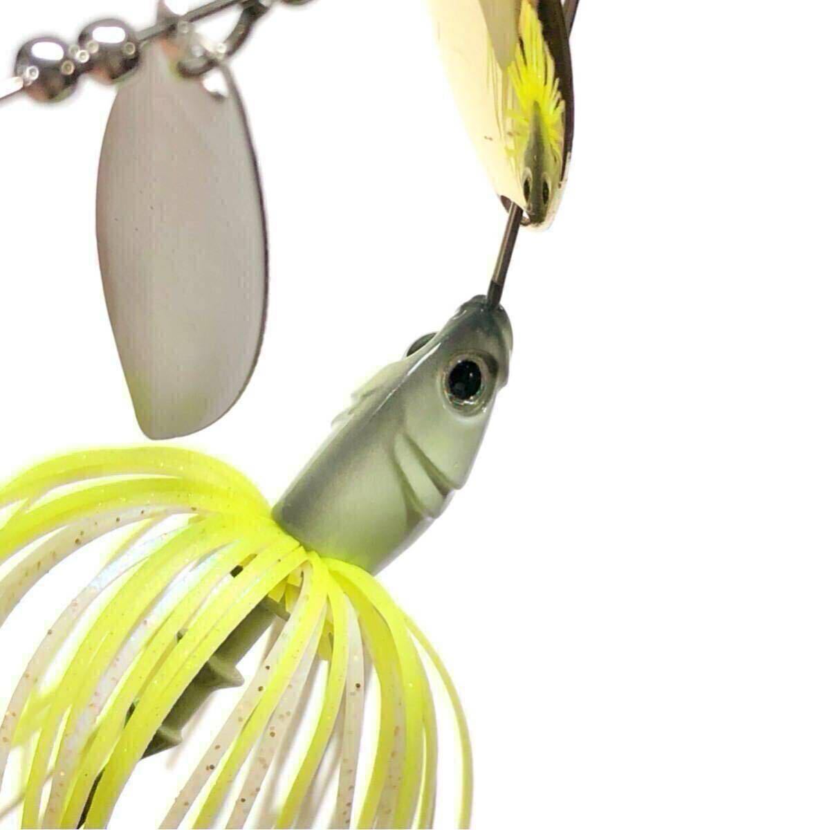 リアブレードはスローリトリーブでもキレ良く回転し、ワイドな回転角でパワフルに水を攪拌。高い集魚力とリアクション効果を発揮します。フロントブレードは、スプリッターに水受けを阻まれてもしっかり水を掴む形状をTW・DWそれぞれ突き詰めました。