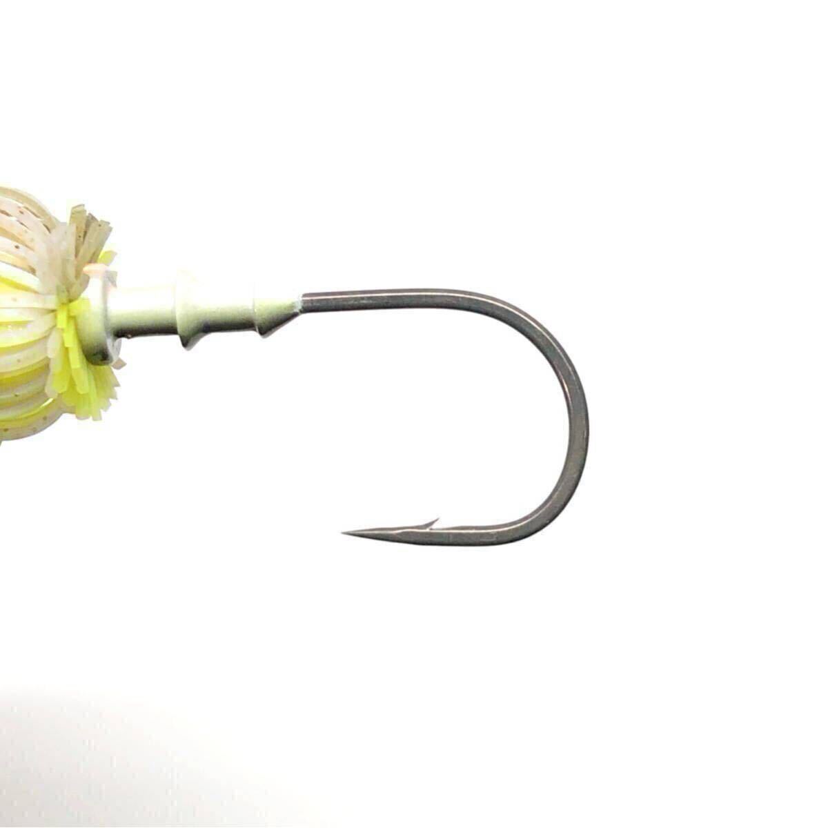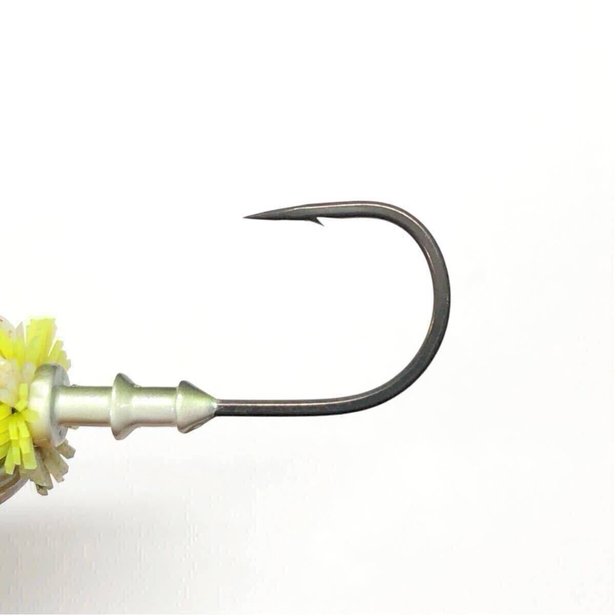 トレーラーフックがなくともノリがよいことを絶対条件とし、付けても違和感のないシャンク長。針先は、極僅かに内側を向くことでフッキングパワーのロスを防ぎます。貫通性能を高めるフッ素コート加工。