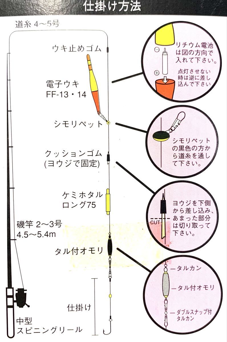 外透明パッケージが傷んでましたので開封除去してますが、仕掛けセットとしては全て未開封未使用状態です。但し、長年保管になりますので付属のウキ用電池やケミホタルは使用出来ない場合がございます。