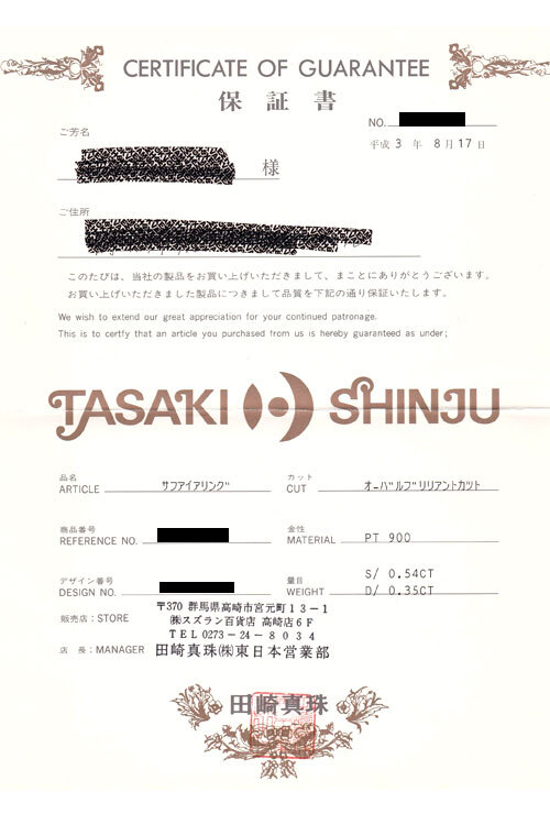 商品名タサキ サファイア リング ダイヤモンド Pt900 TASAKI