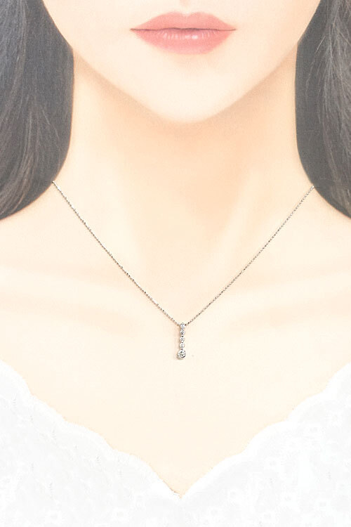 コメントメレダイヤモンドと一回り大きなダイヤモンドが繊細に輝く、上品なネックレスです。流れを感じさせるようなI字のトップが、すっきりとした印象をもたらします。