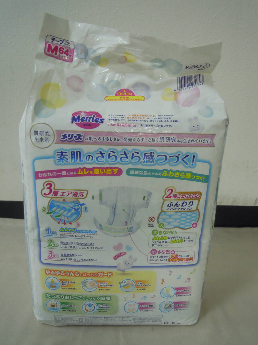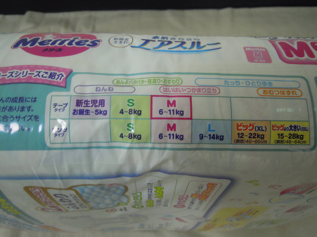 紙おむつ 花王 メリーズ エアスルー テープタイプ M 6~11㎏ 子供用 長期保管品です。