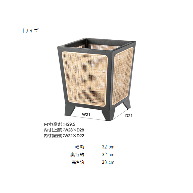 サイズ(内寸)/上部約28×28、底部約22×22、高約29.5cm