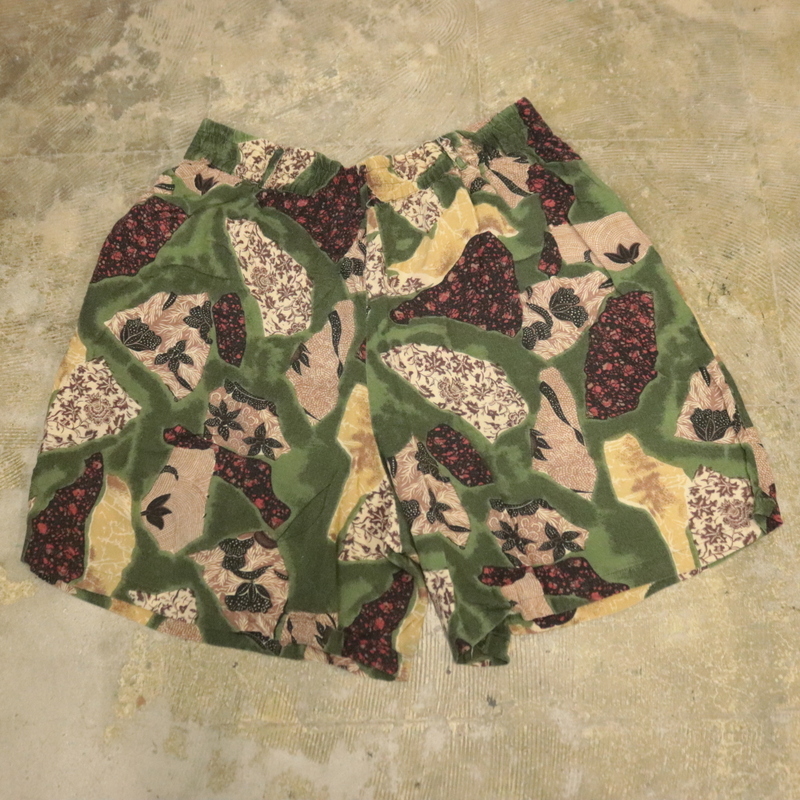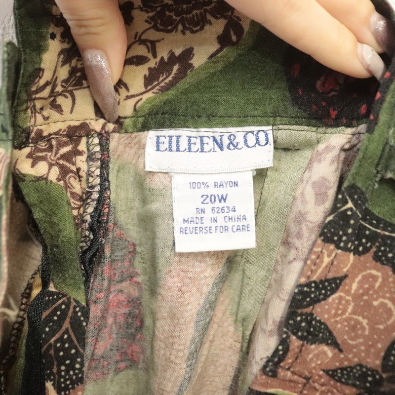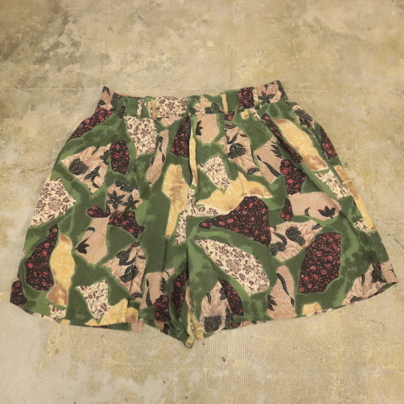 商品名 E787 2000年代製 EILEEN&CO ハーフパンツ■00s 表記20インチ レディース グリーン レーヨン 柄 フラワー アメカジ ストリート 古着 激安