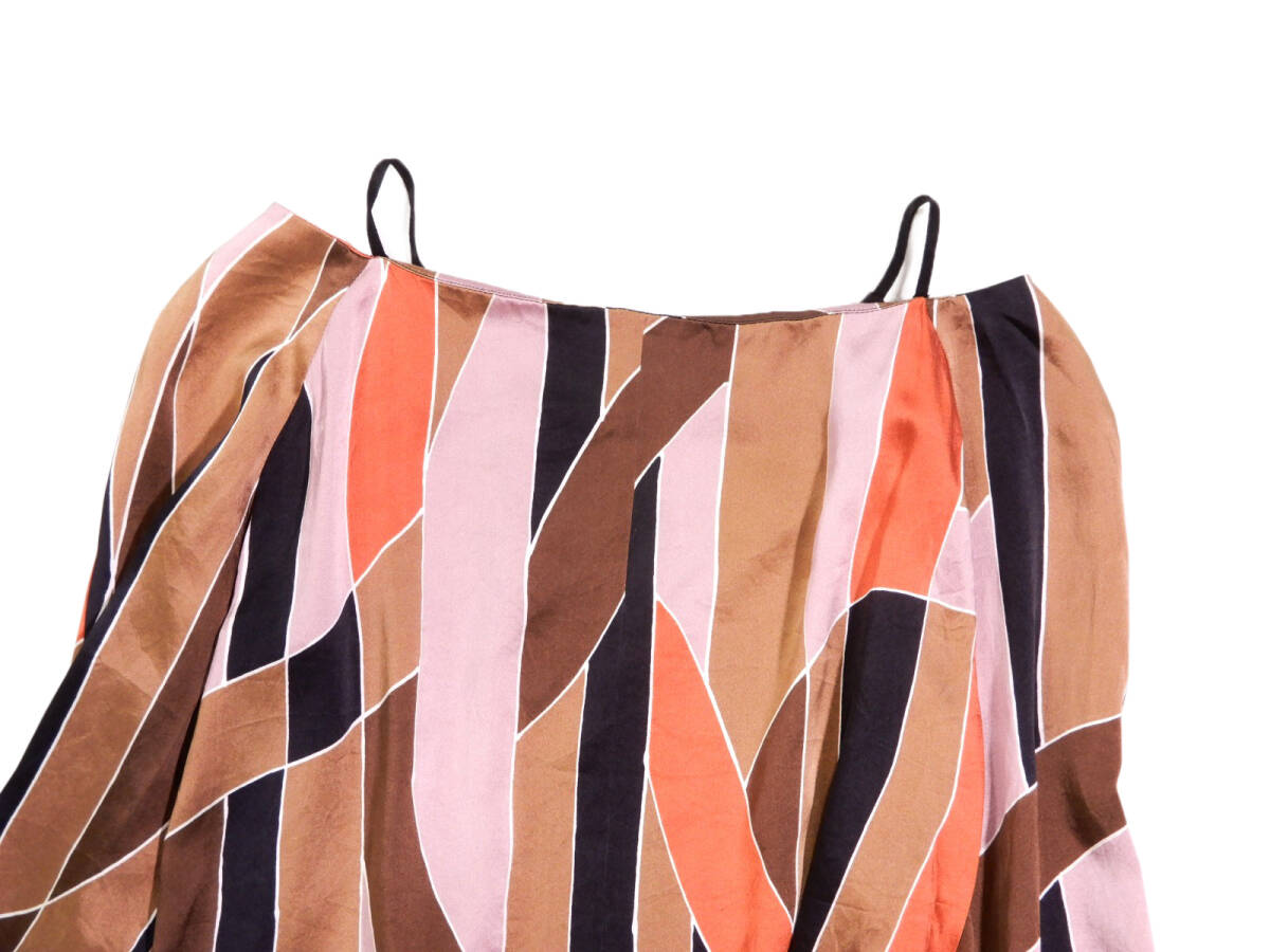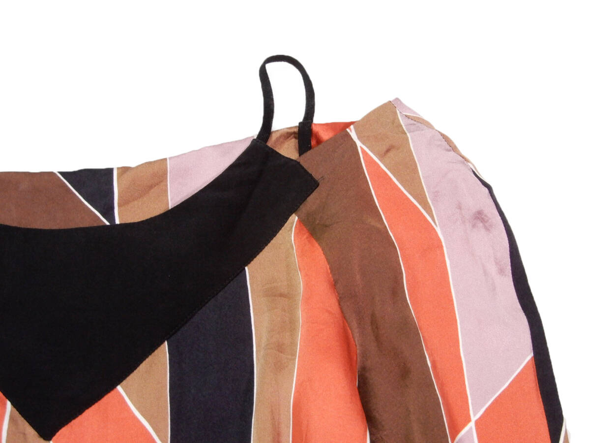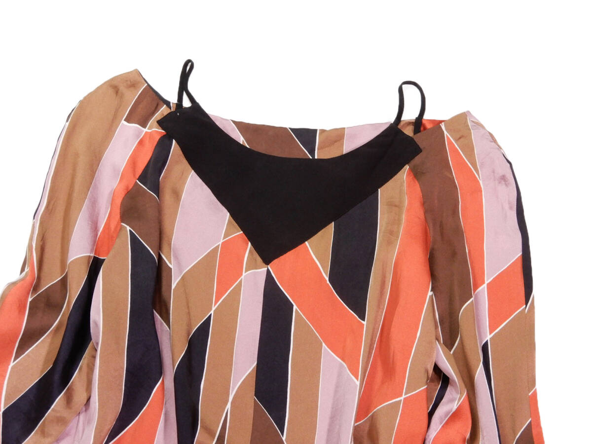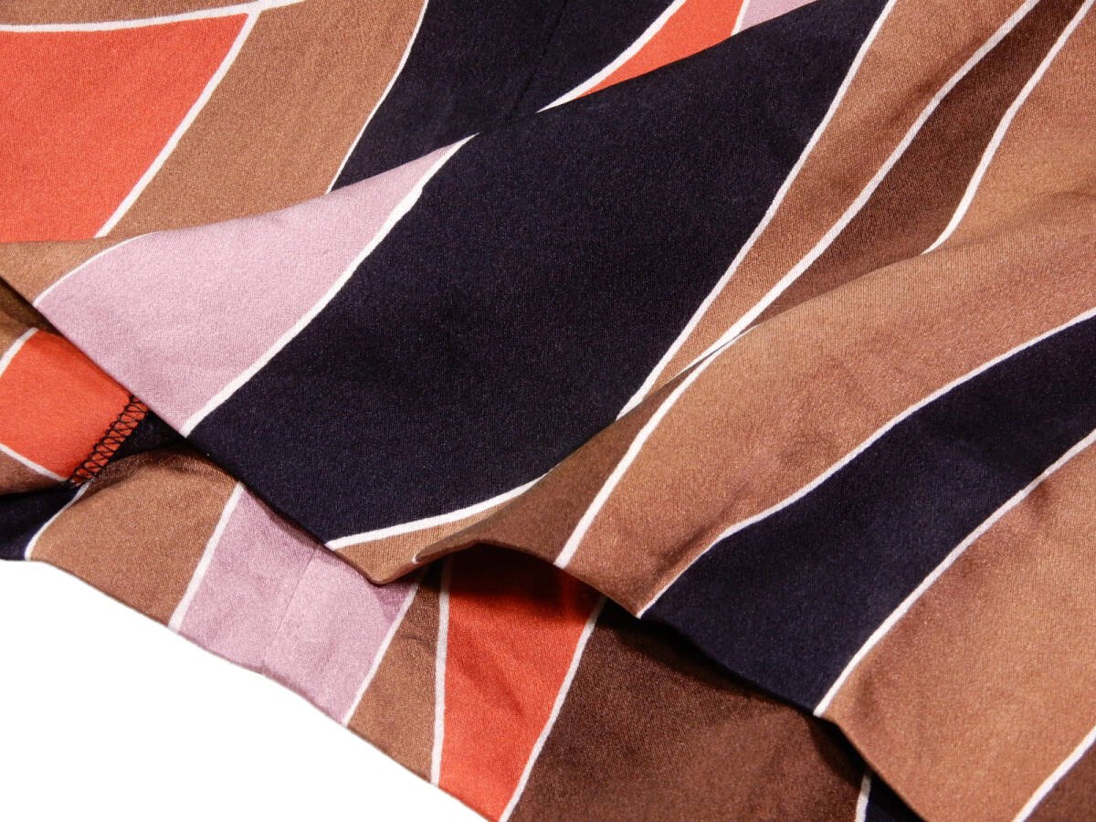 ミッソーニ ブラウス サイズ:42 お色:ブラウン系、オレンジ系、モーブ系、黒、白等 素材:シルク100% 平置き実寸:身幅47 着丈59 裄丈60㎝位 |