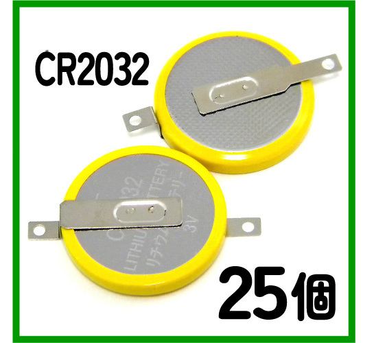 ★ タブ付き CR2032電池 (横型端子付) メモリーバックアップ 【 25個セット 】★ 送料無料 ★