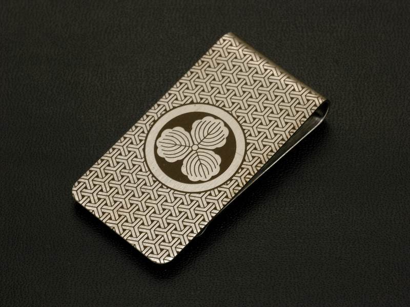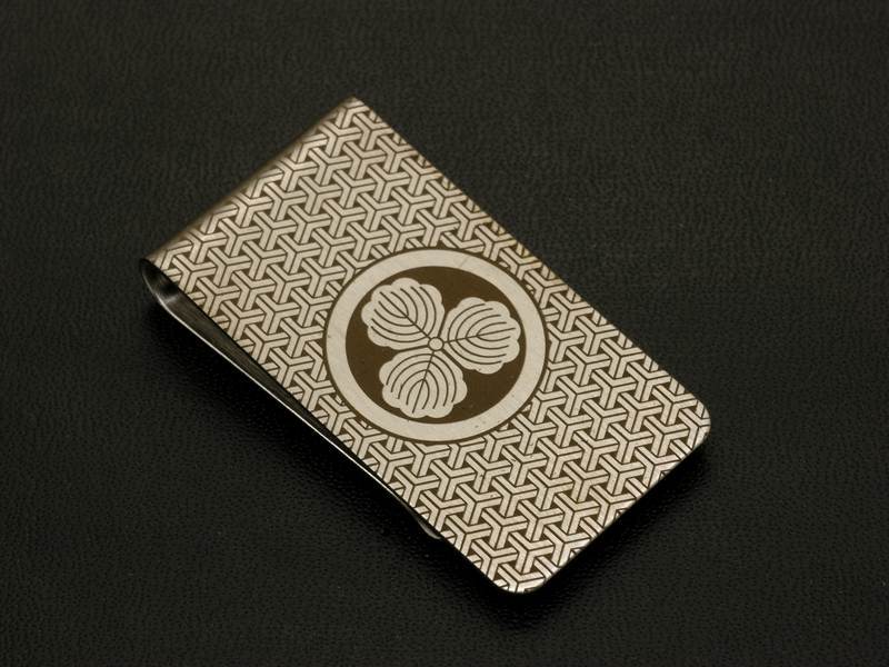 丸に三つ柏 家紋入り マネークリップ まるにみつがしわ money clip 戦国武将 家紋グッズ 送料無料【オーダーメイド可】