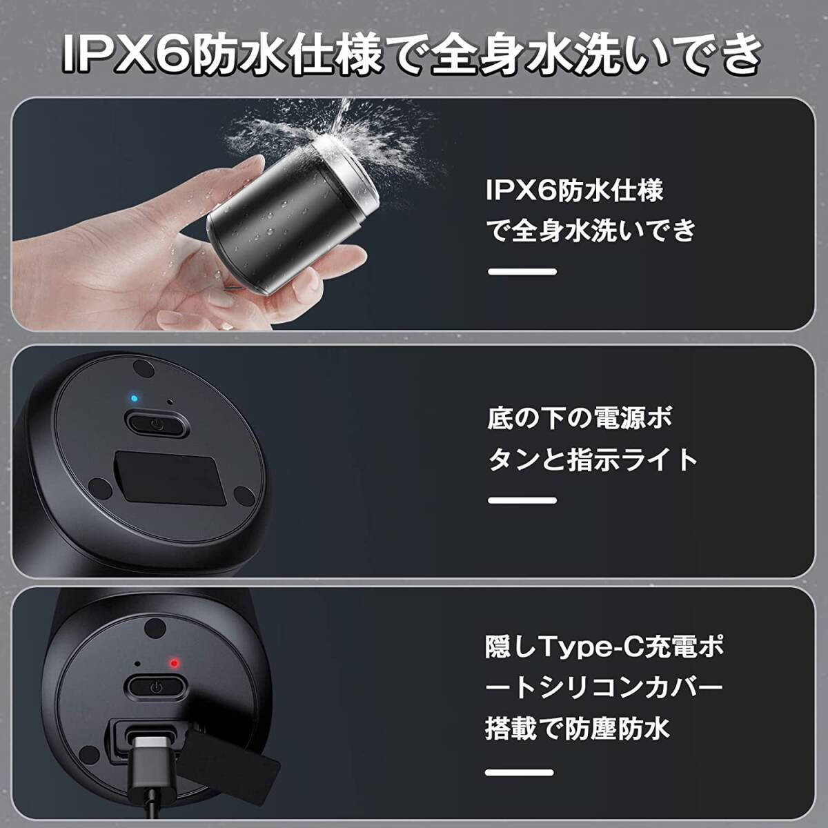 メンズシェーバー 小型 高速回転式 IPX6防水 乾湿両用 水洗い可能 90分間の連続使用