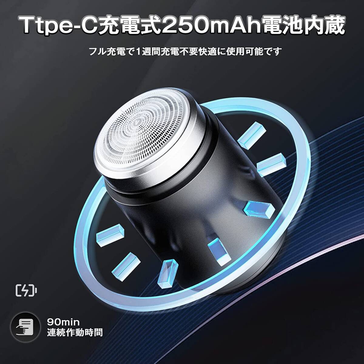 • 【電池内蔵&防水乾湿両用】このミニシェーバーには250mAhの充電式バッテリーが内蔵されており、1時間のフル充電で1か月使用できます( 2分間/1日)。IPX6級の全身防水、底部のType-c充電口はゴム栓防水防塵設計、乾湿両用で水で直接洗えるのでお手入れがとても簡単です
