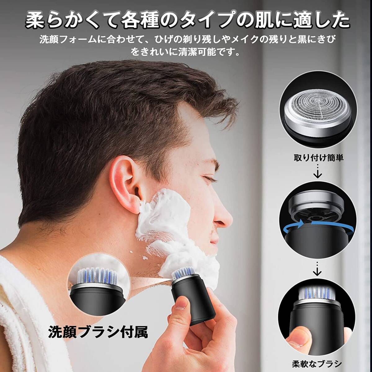 • 【洗顔機能付き&一台二役】洗顔ブラシが備える2-in-1メンズシェーバーは髭剃りヘッドを取り外し、洗顔ブラシを装着すれば洗顔機能が使えます。柔らかい毛でできたブラシは高品質、すべての肌タイプに適しています。高速回転ブラシは残りのひげを効果的に除去するだけでなく、また、肌の表面をクレンジングして、顔を清潔でリフレッシュできます