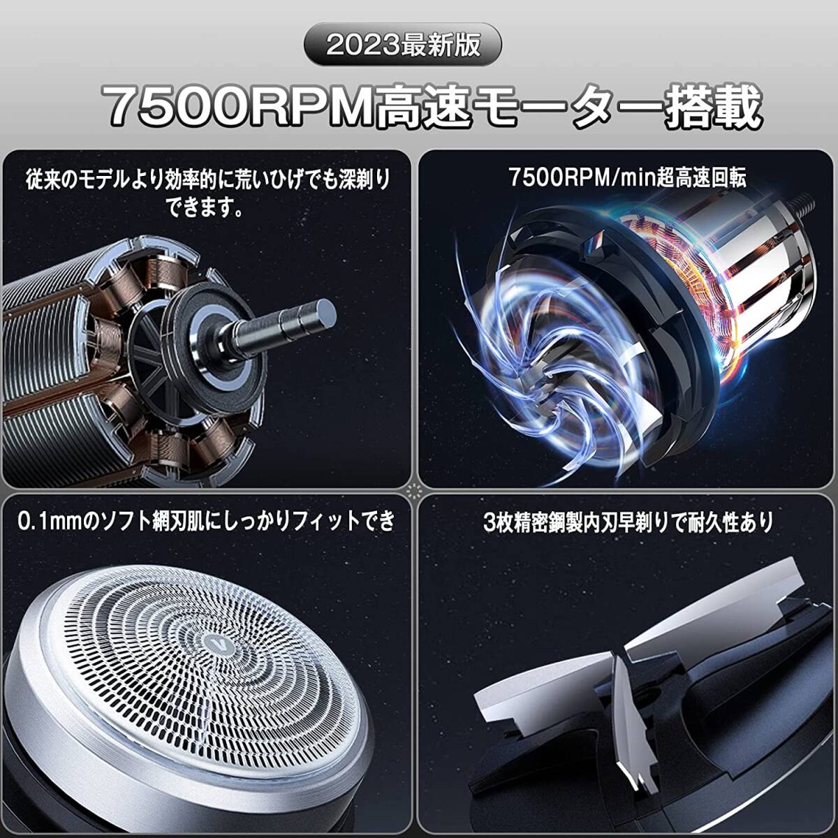• 【最新版高速回転7500rpm】2023年最新版高速回転7500rpm/分パワフルのモーターと3枚高品質アルミ合金製内刃が搭載している電動シェーバーは耐久性があり、2分間で早剃り&深剃りを同時に実現でき、荒いひげでも簡単に剃り、仕事のの朝の時間を節約します!