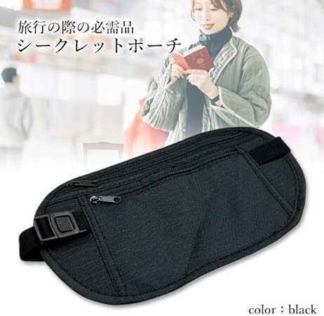 シークレットポーチ トラベルポーチ 海外旅行 ウエスト ポーチ 薄い セキュリティ パスポート 貴重品 盗難防止 ブラック 新品未使用品になります。