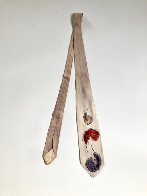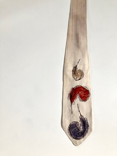 ビンテージ 50s ハンドペイント ネクタイ Paris Feathers 検:40s 60s