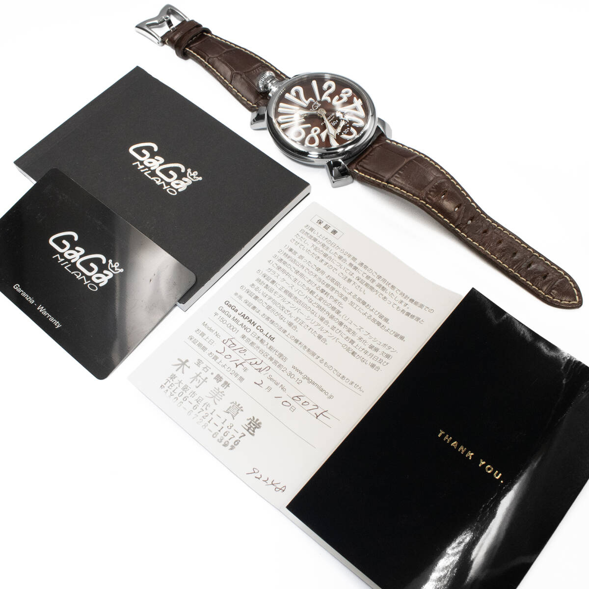 送料無料 ガガミラノ 腕時計 手巻き メンズ マヌアーレ48mm 5010.13S 茶色 メタリックブラウン 目立つ 裏スケ ロゴ マーク 革ベルト Q129