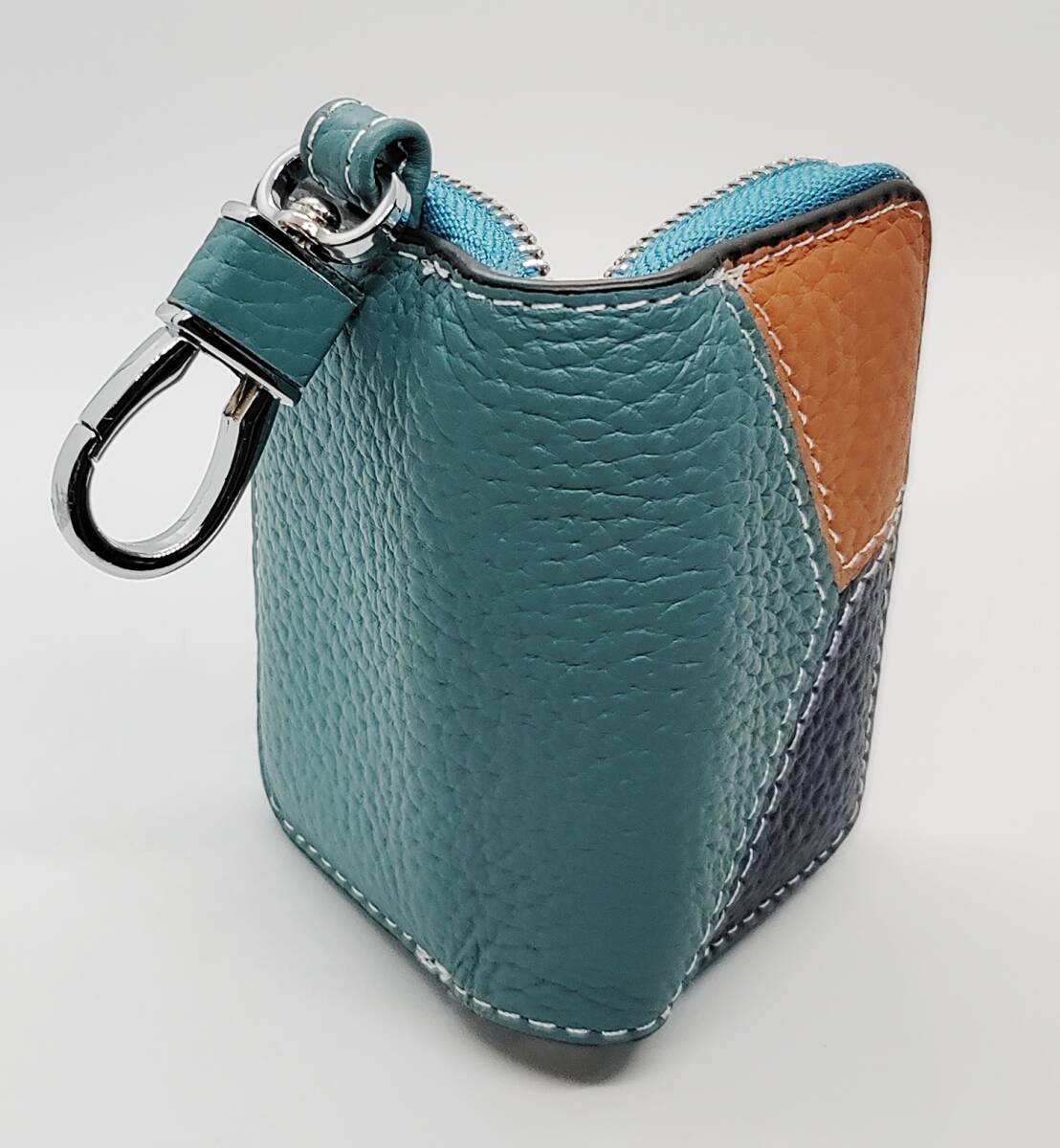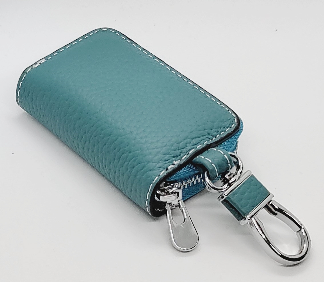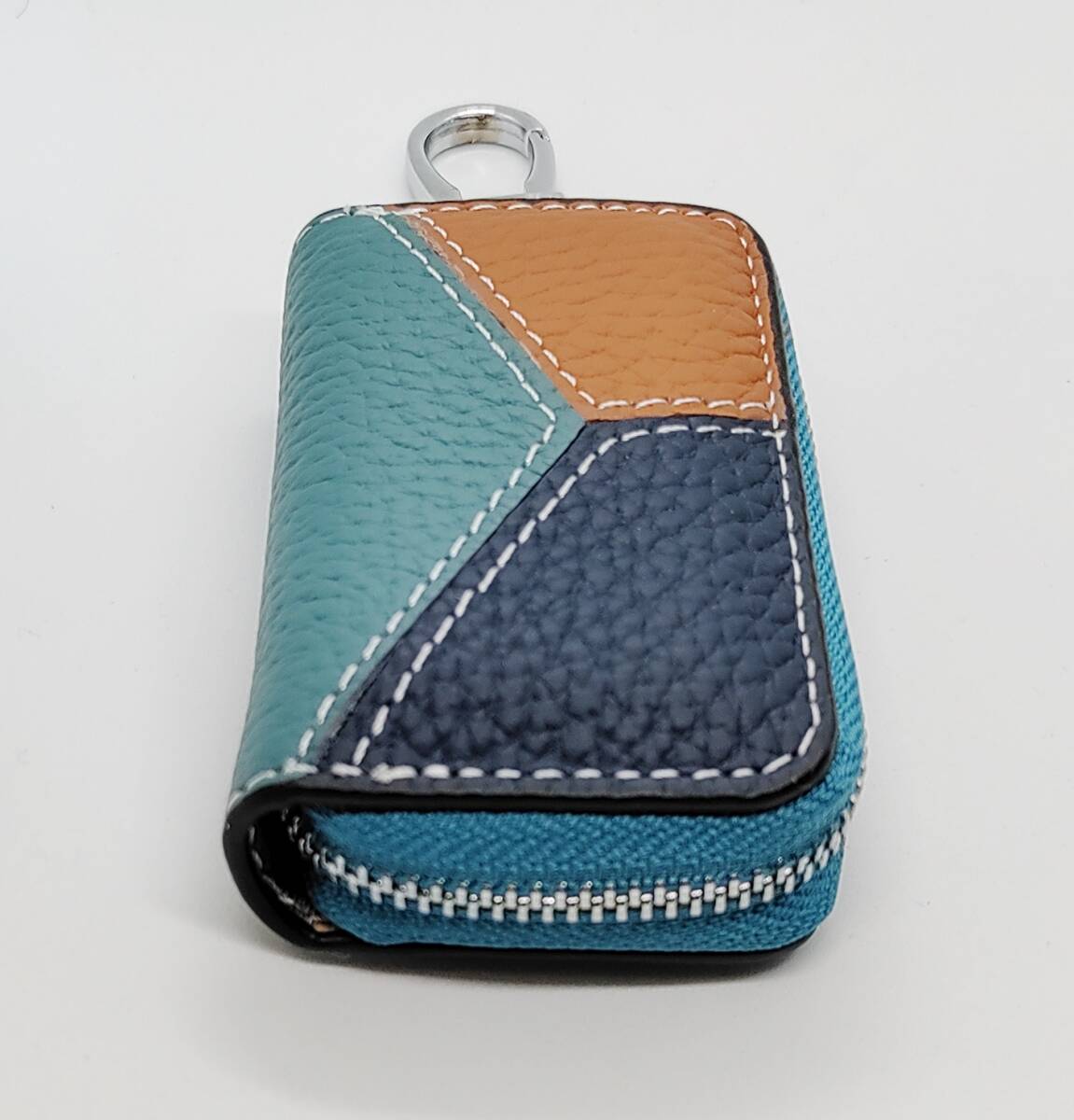 キーケース ★新品・未使用品 本革 レザー スマートキー キーホルダー 鍵 キーチェーン ターコイズブルーxネイビーxブラウン 3色カラー