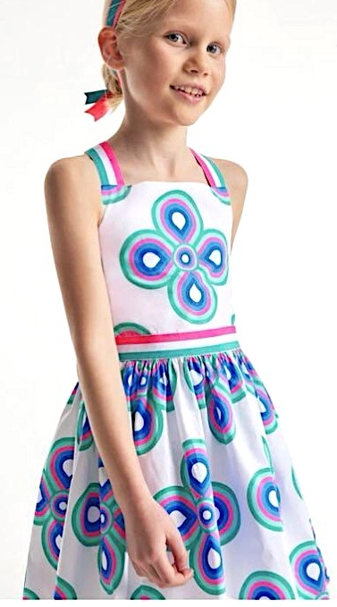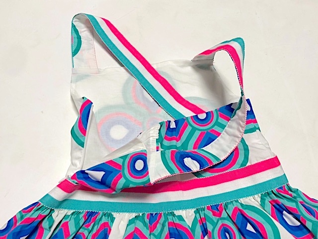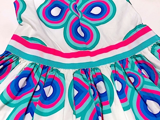華やかなカラーリングと幾何学フラワーモチーフが目を引く、Jacadi(ジャカディ)のキッズワンピースです。