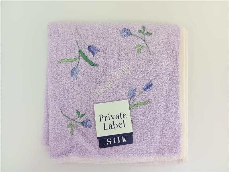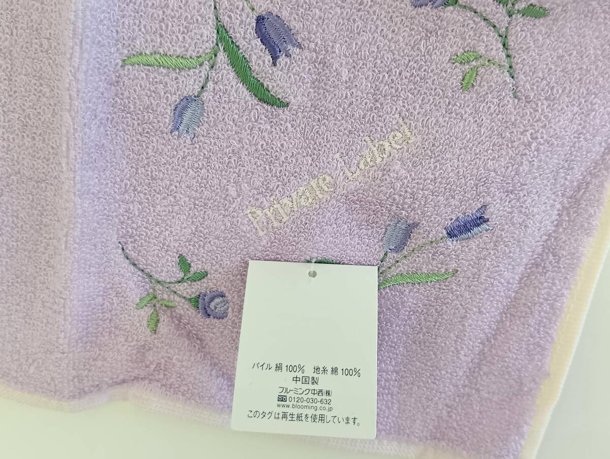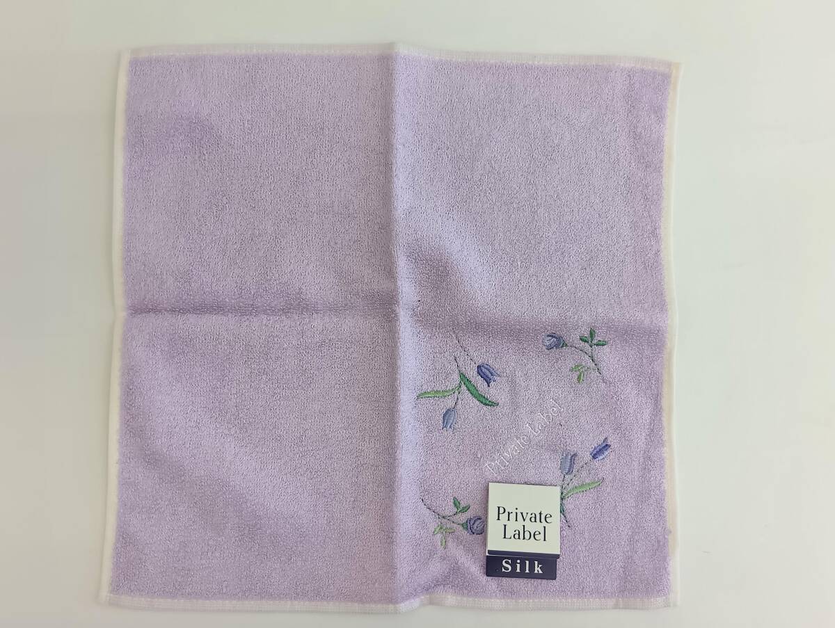 ☆Private Label プライベートレーベル タオルハンカチ シルク コットン混 ブルーローズ 花柄 刺繍 ブルーミング中西 長期保管品 |