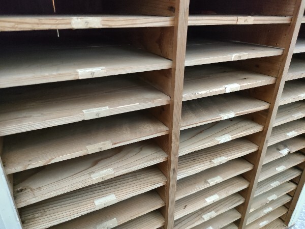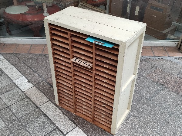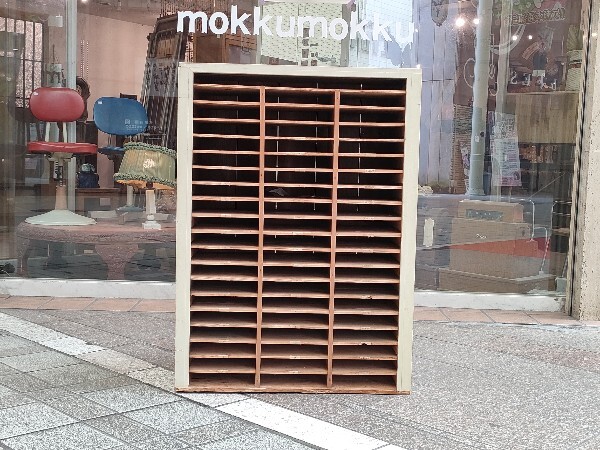 1337 柔らかい色合いの古い書類棚/カルテケース/収納棚/書類棚/本棚/アンティーク/ヴィンテージ/古道具/古家具/店舗什器