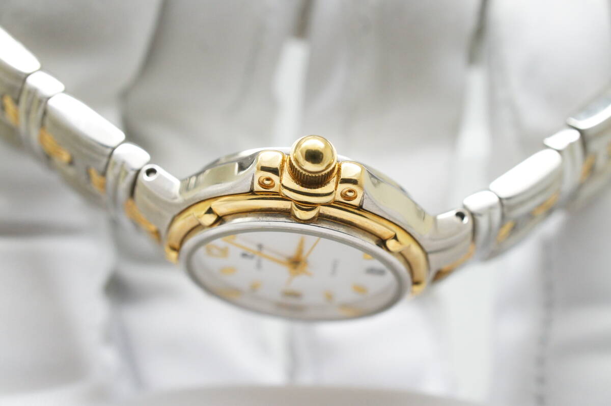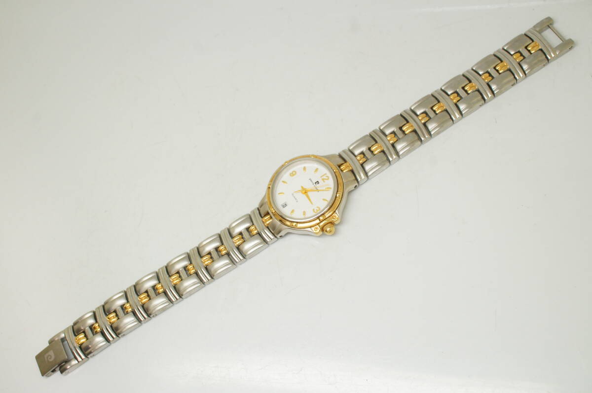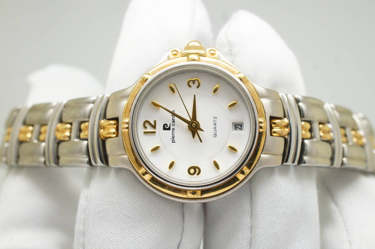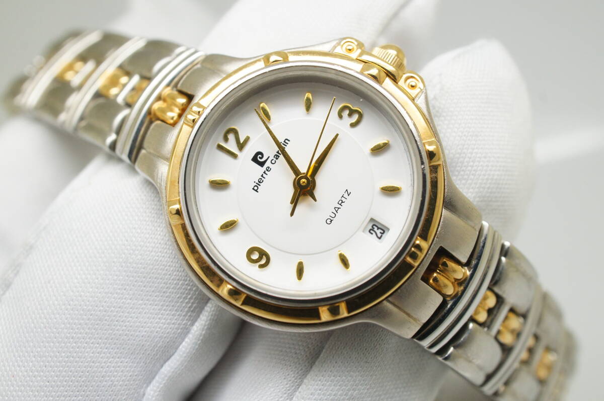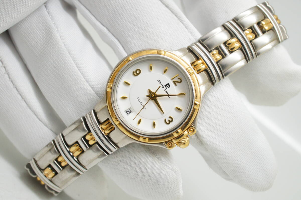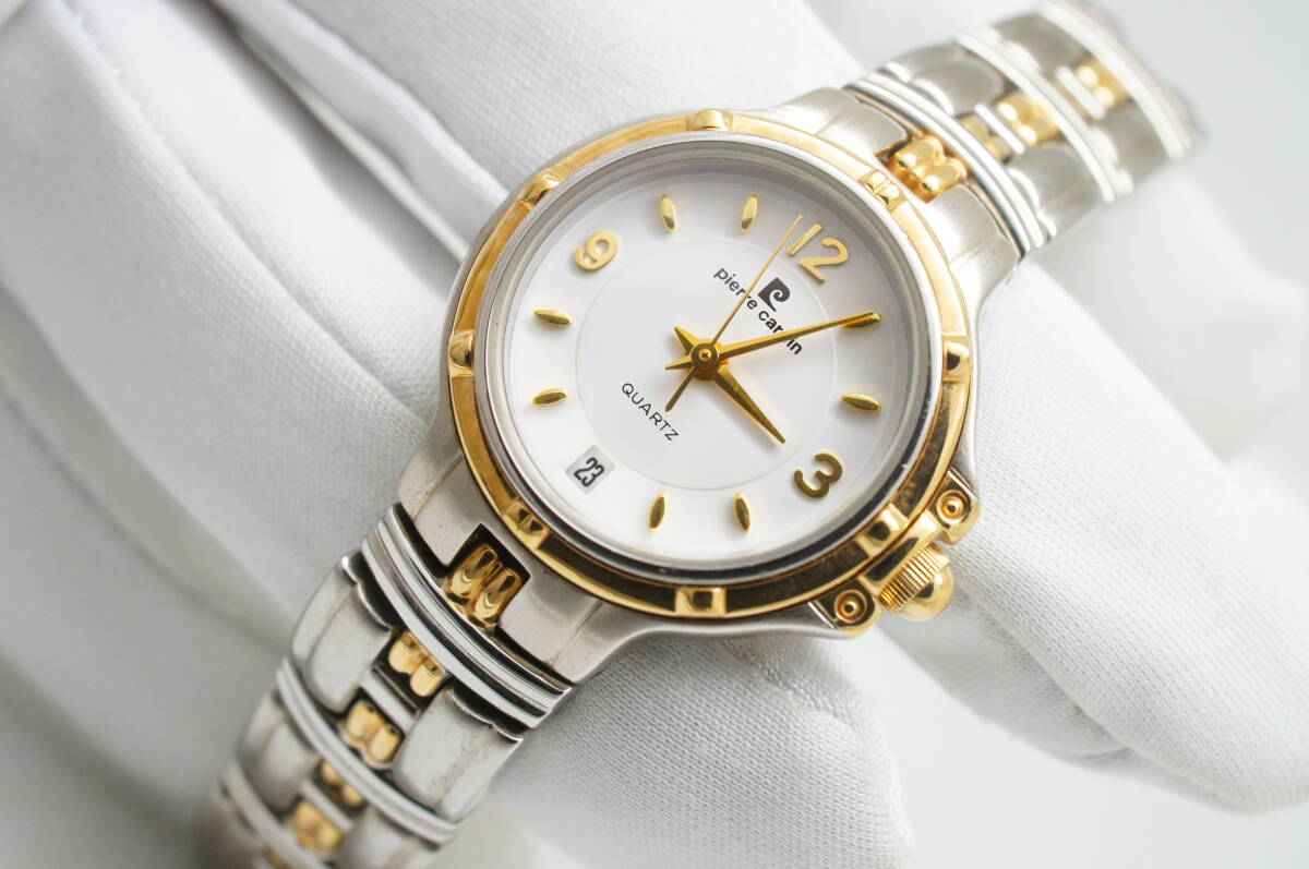 G148●作動良好 美品 pierre cardin ピエール・カルダン 白文字盤 デイト レディース腕時計 コンビ お洒落 クォーツ