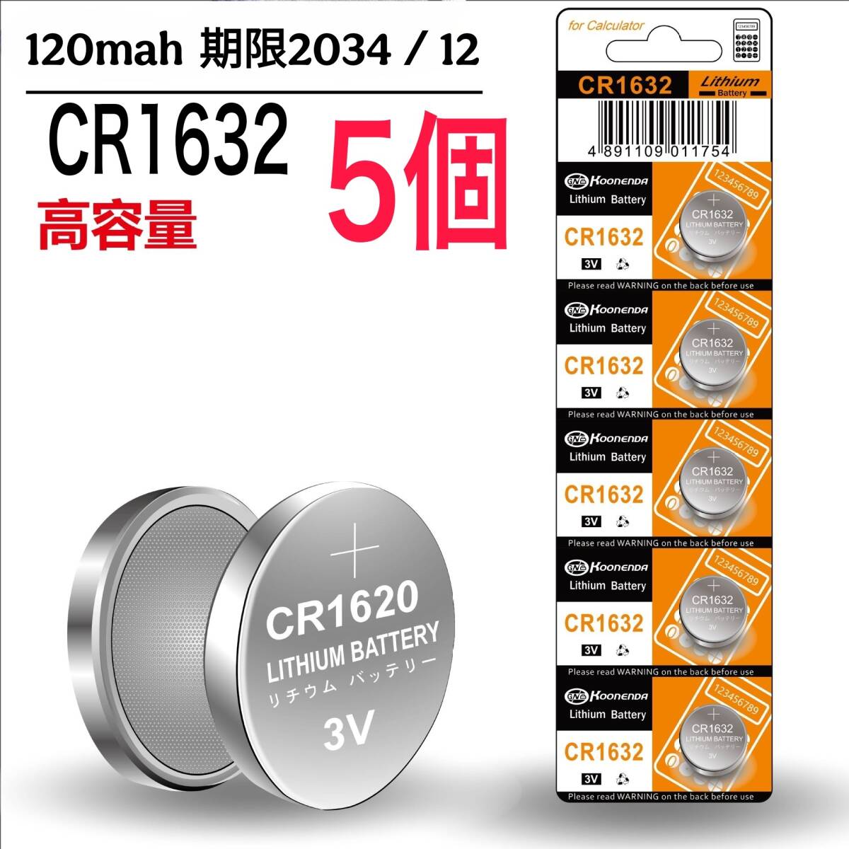 ボタン電池 CR1632 (3V 120mah)【5個セット】 消費期限2034/12 リチウムコイン電池 DL1632 容量偽装なし