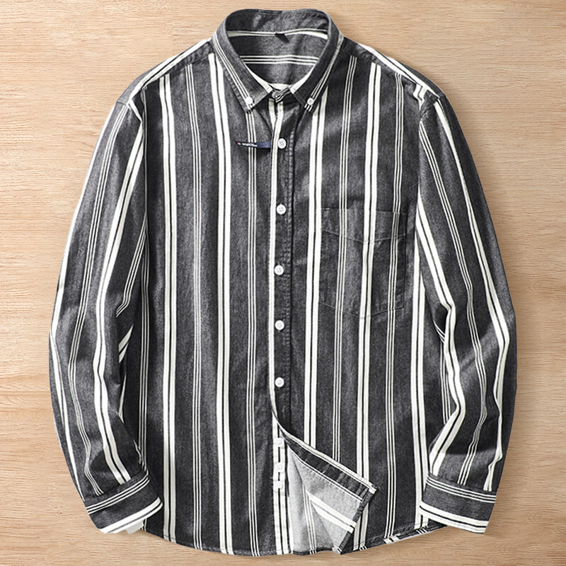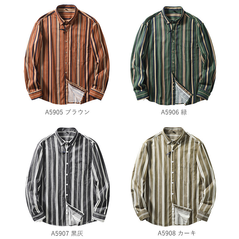 A5907-4XL 新品 DCKMANY 黒灰 ストライプ 綿100% ウォッシュ 長袖シャツ 形態安定 春秋 コットン メンズ 紳士 ボダンダウン ワイシャツ