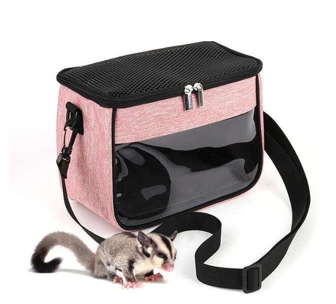 小動物用のキャリーバッグです。 ペットとのお出かけ時に横からもいつでも中を確認できます。 バッグの中のペットも飼い主と一緒に外の景色を楽しめます。 モモンガやハムスター、リス、モルモット、フェレット、小型のうさぎ?チンチラに赤ちゃん子猫などにぴったりです。