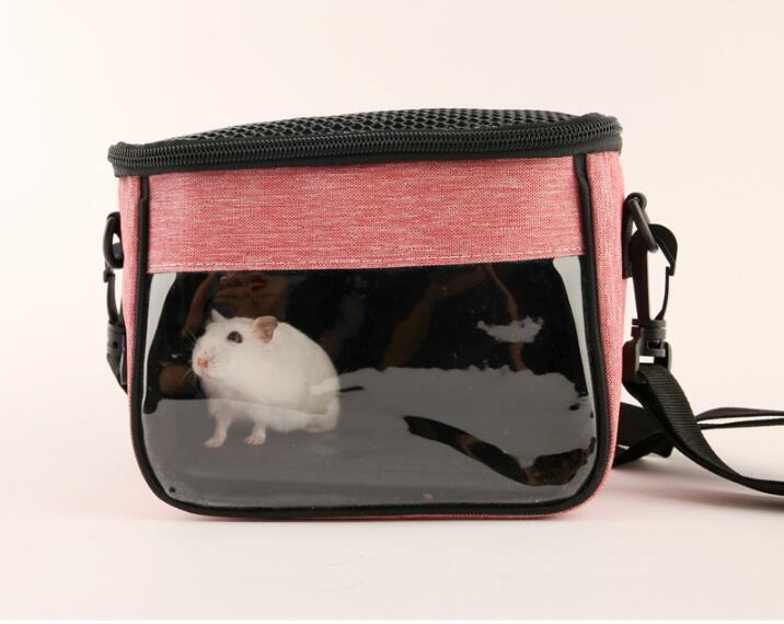 新入荷ショルダーバッグ ペット用 小動物用 キャリーバッグ お出かけ ハムスター ラット チンチラ モモンガ うさぎ かばん 透明 ピンク