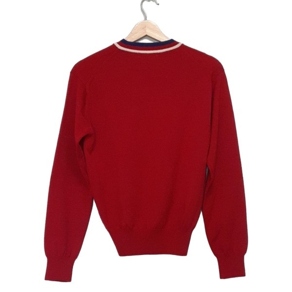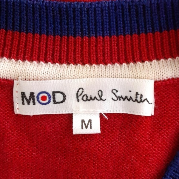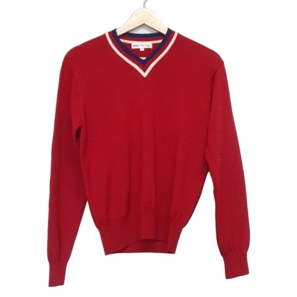 ポールスミス PaulSmith 長袖セーター/ニット サイズM - レッド×ネイビー×白 メンズ Vネック 美品 トップス