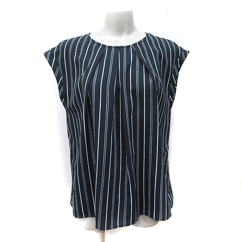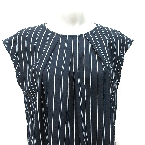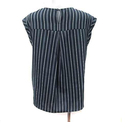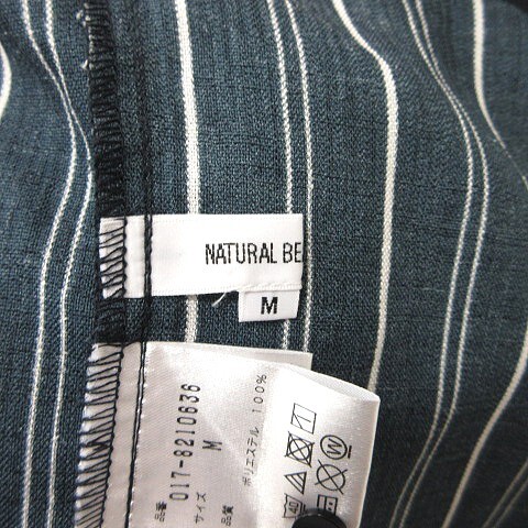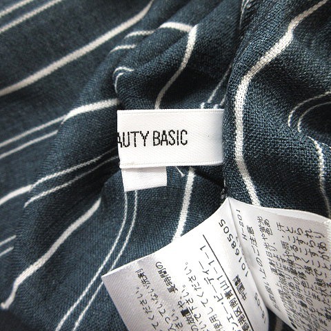 ナチュラルビューティーベーシック NATURAL BEAUTY BASIC チュニック ストライプ フレンチスリーブ M 黒 ブラック 白 ホワイト