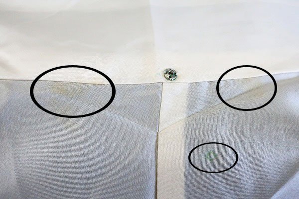 | 【裏地】SAランク 未使用品ですが、衿裏付近にホック跡と薄いシミがございます。表地には影響ございません。(最終画像ご参照下さい。) |