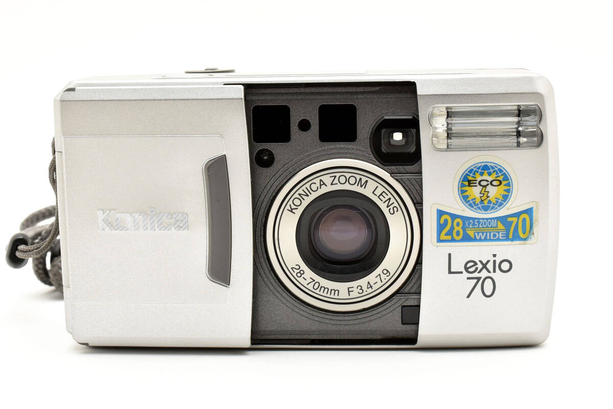 コニカ Lexio 70は、洗練されたコンパクトなデザインに多機能を詰め込んだ、使いやすさが魅力のフィルムカメラ。