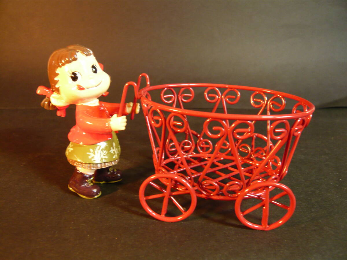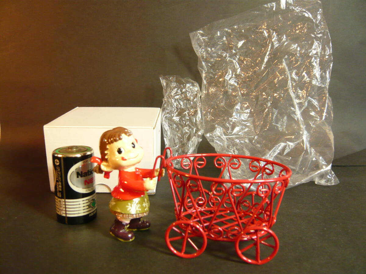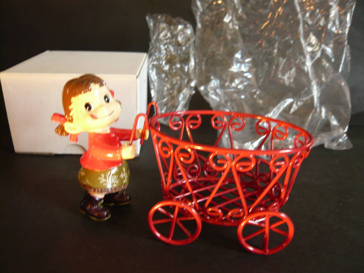 ペコちゃんのサイズ 高さ約7.8センチ、硬質樹脂製 ワゴン車のサイズ 横の長さ約9.3センチ、高さ約7.0センチ、幅約6.5センチです。箱のサイズは、縦約7.0センチ、横約11.0センチ、高さ約10.0センチです。ペコちゃんとワゴン車はそれぞれのセロハン袋に入れてありました。ワゴン車とペコちゃんは外れます。