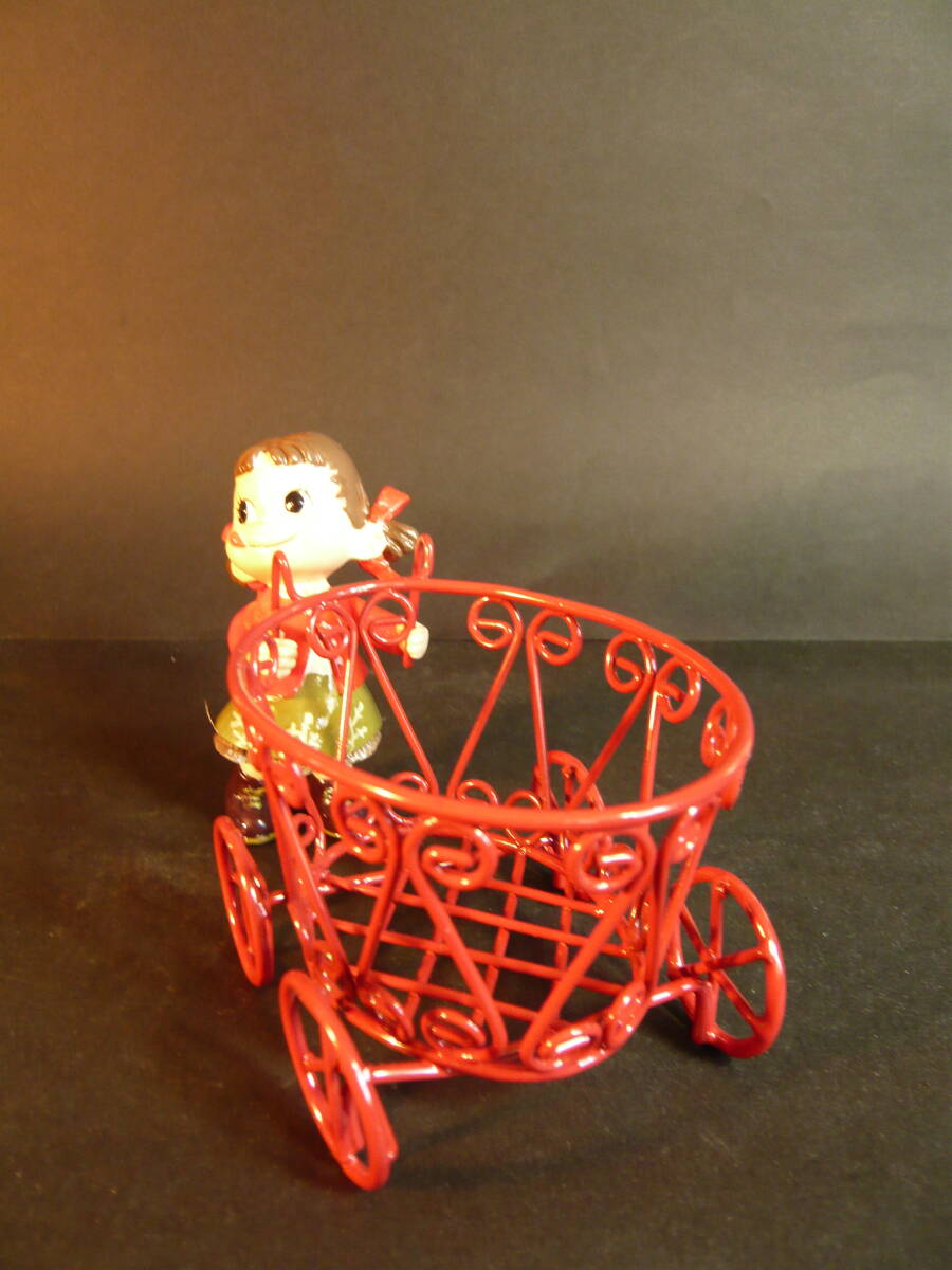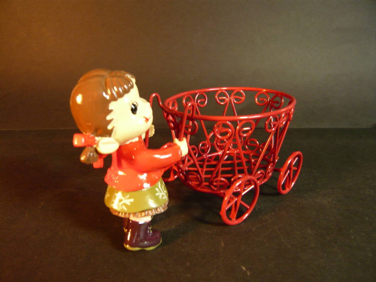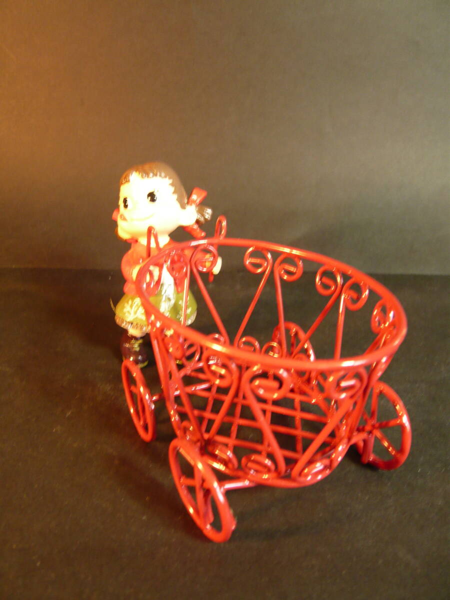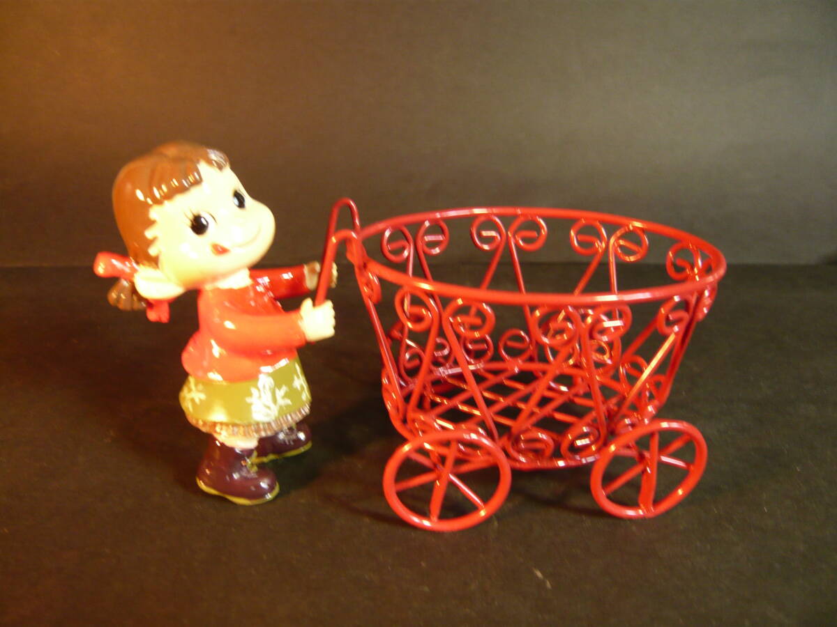 ペコちゃんのサイズ 高さ約7.8センチ、硬質樹脂製 ワゴン車のサイズ 横の長さ約9.3センチ、高さ約7.0センチ、幅約6.5センチです。箱のサイズは、縦約7.0センチ、横約11.0センチ、高さ約10.0センチです。ペコちゃんとワゴン車はそれぞれのセロハン袋に入れてありました。ワゴン車とペコちゃんは外れます。